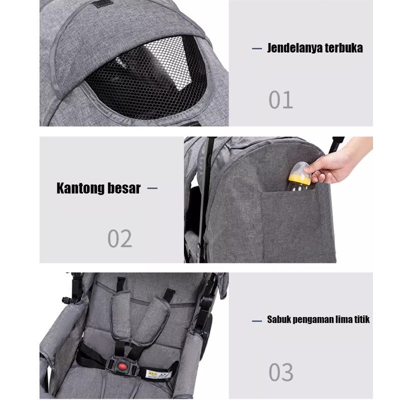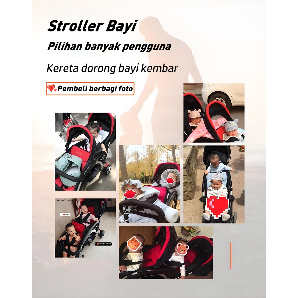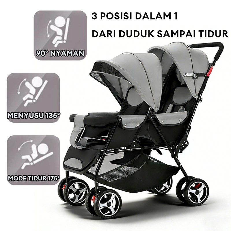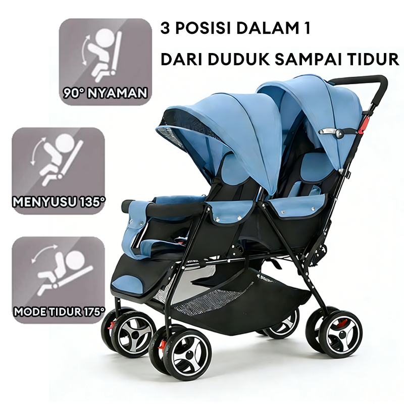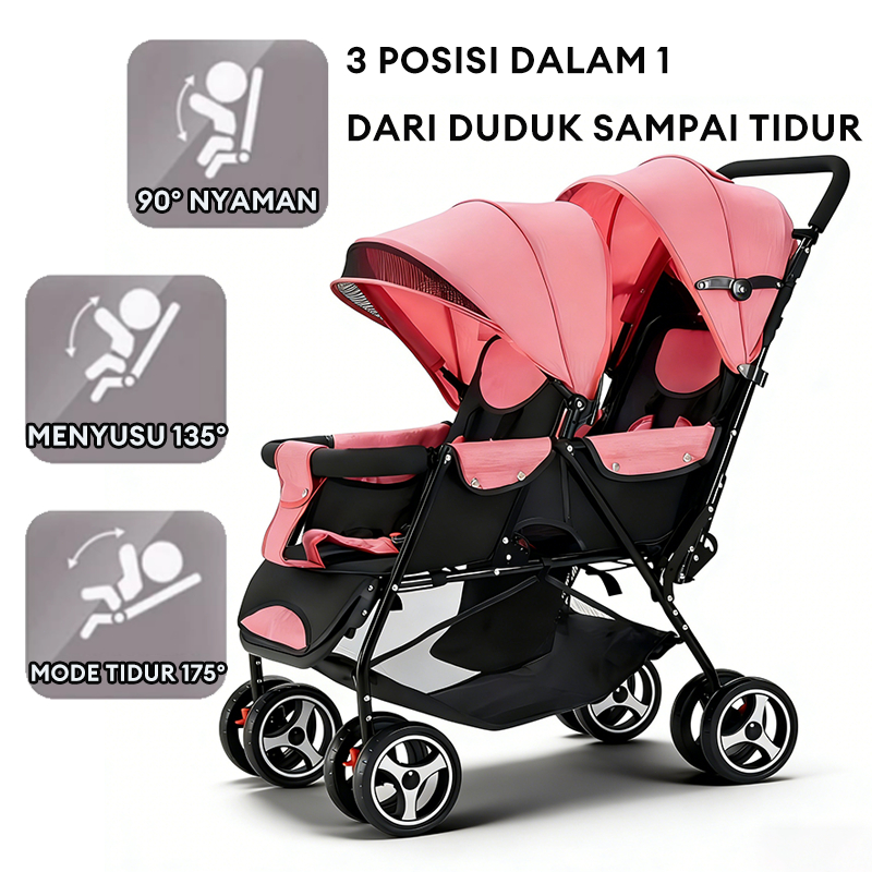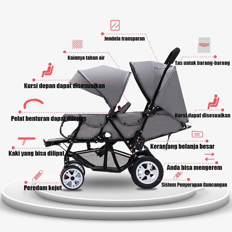 Garansi Seumur Hidup-Stroller Twin Dapat Dilipat Stroller Kembar Travelling Troli Bayi Maksimum 50kg