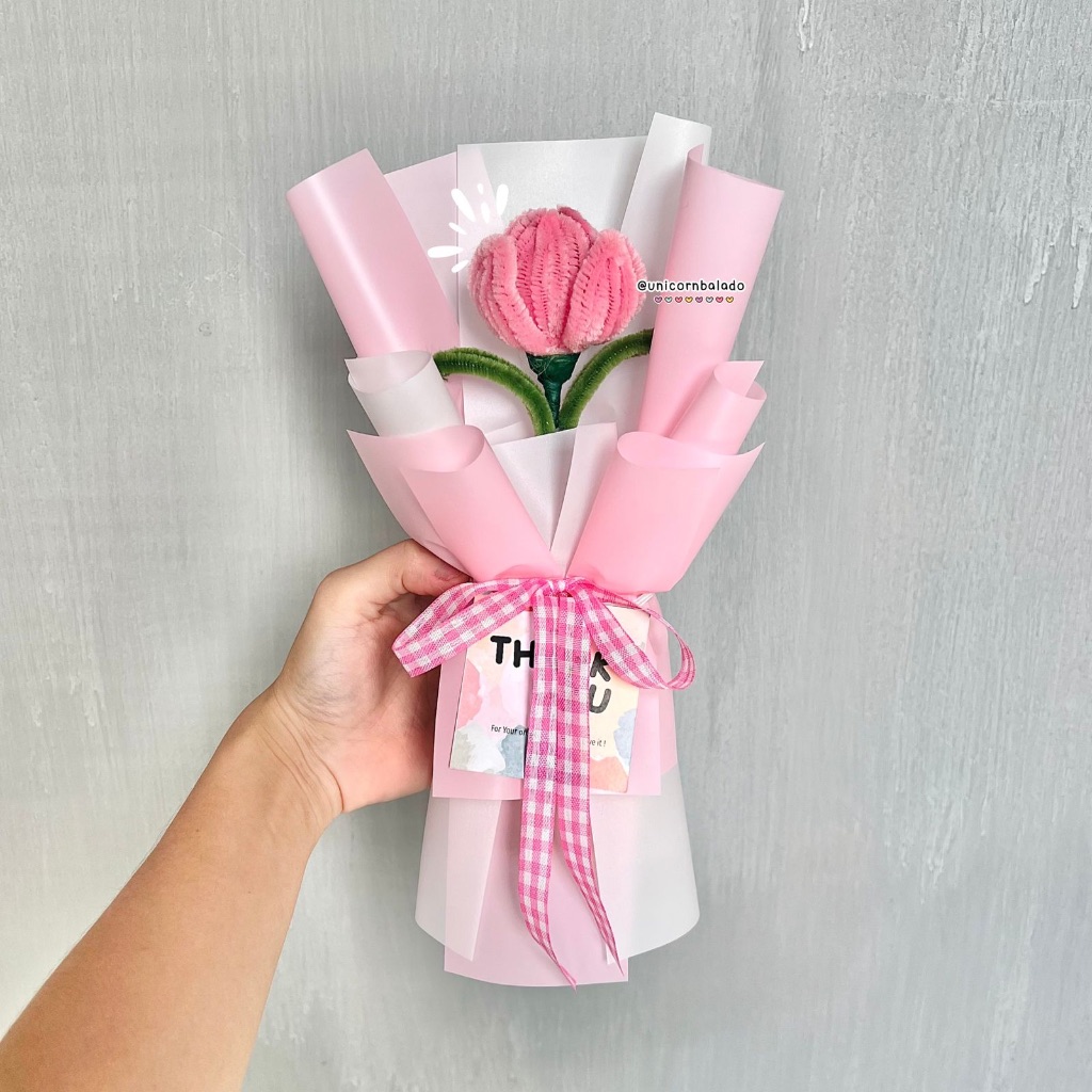 Buket Bunga Tulip Kawat Bulu (Pipe Cleaner)