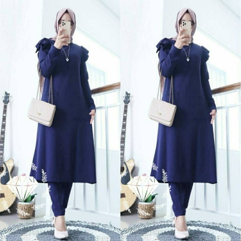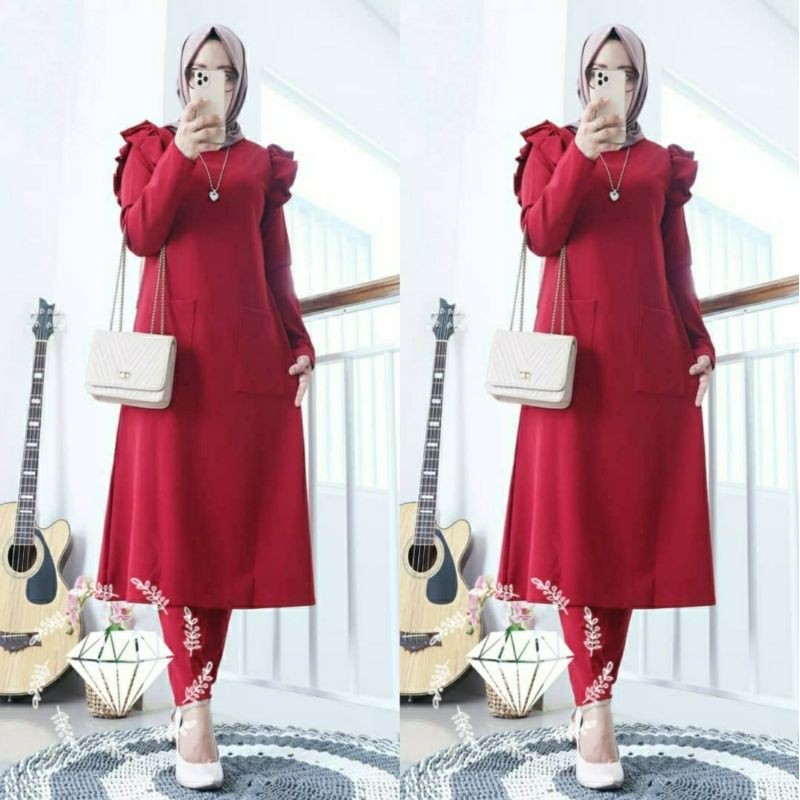 SETELAN LEBARAN SET 2IN1 FASHION TRENDY SET TUNIK CELANA PANJANG ED-SET KUMA RAMPLE