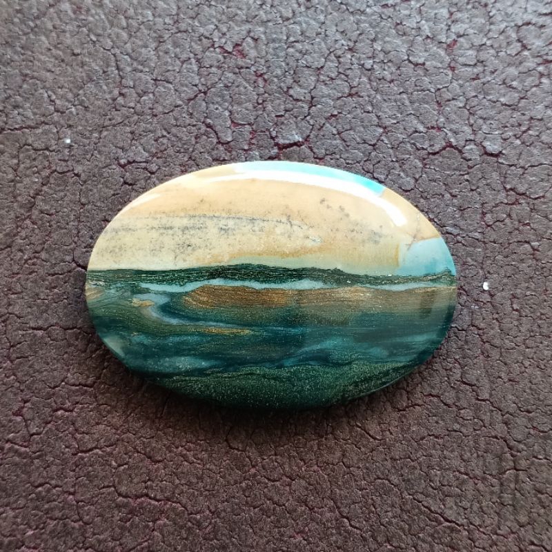 Batu Gambar Landscape - Jasper Gambar Sederhana. Bukan Batu Black Opal Batu Marjan Batu Ijo Garut Pacitan Akik Darah