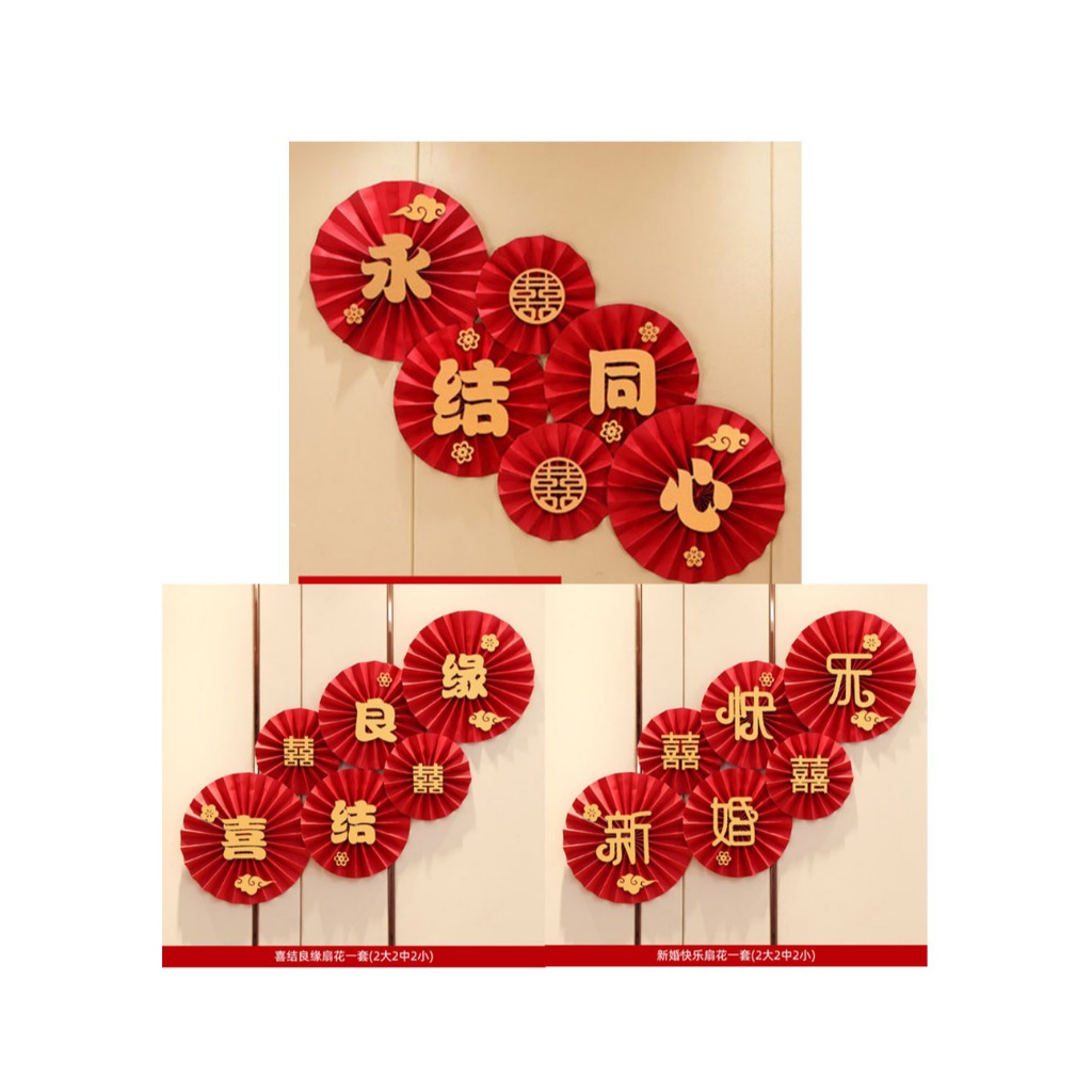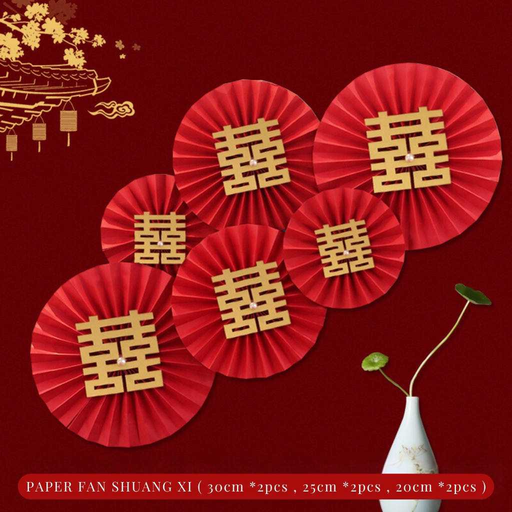 DP Set Dekor PAPER FAN SHUANG XI / Dekorasi BACKDROP WEDDING SANGJIT Bentuk Kipas Tulisan Shuang Xi WED25