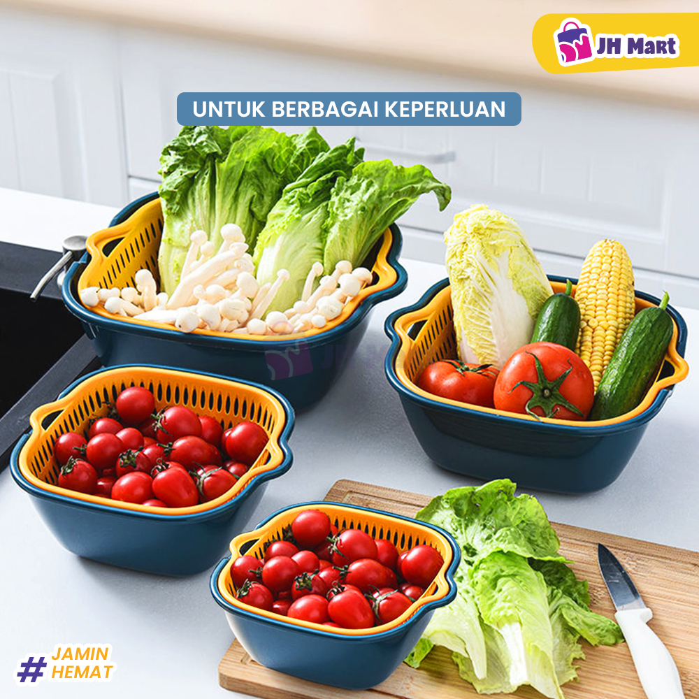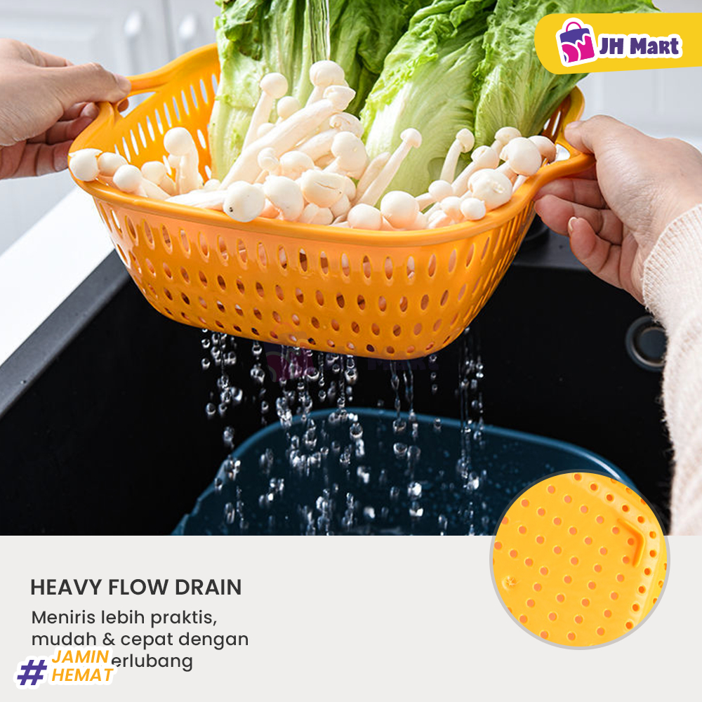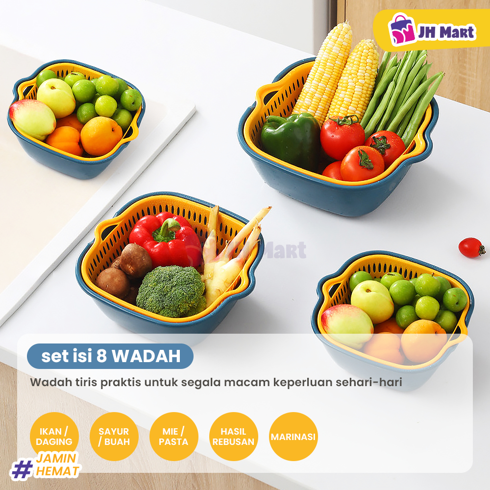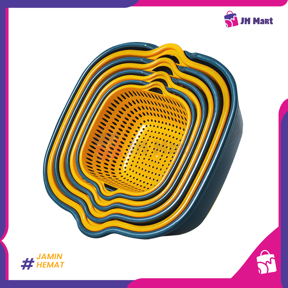 JHM - Baskom Buah Sayur 8in1 Multifungsi Saringan Cuci Lipat Serbaguna Plastik