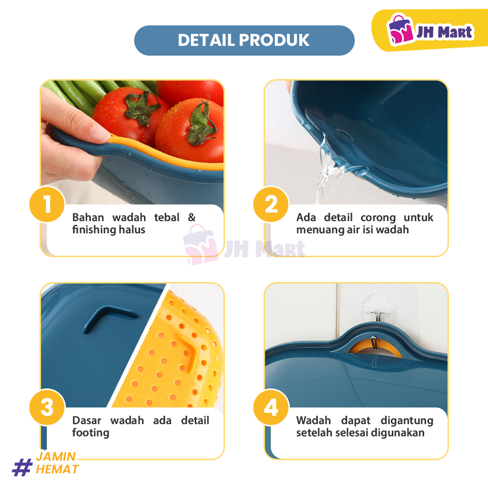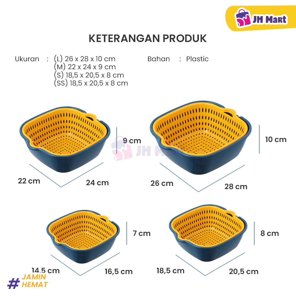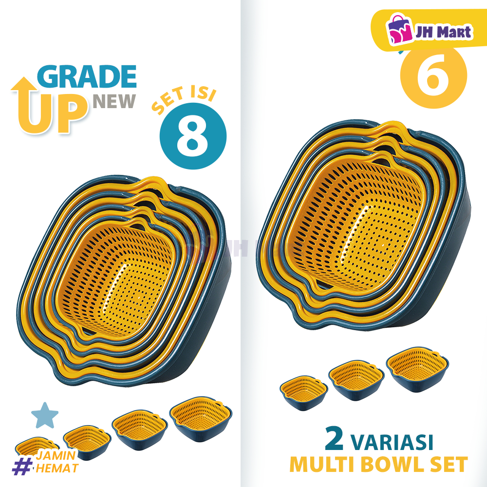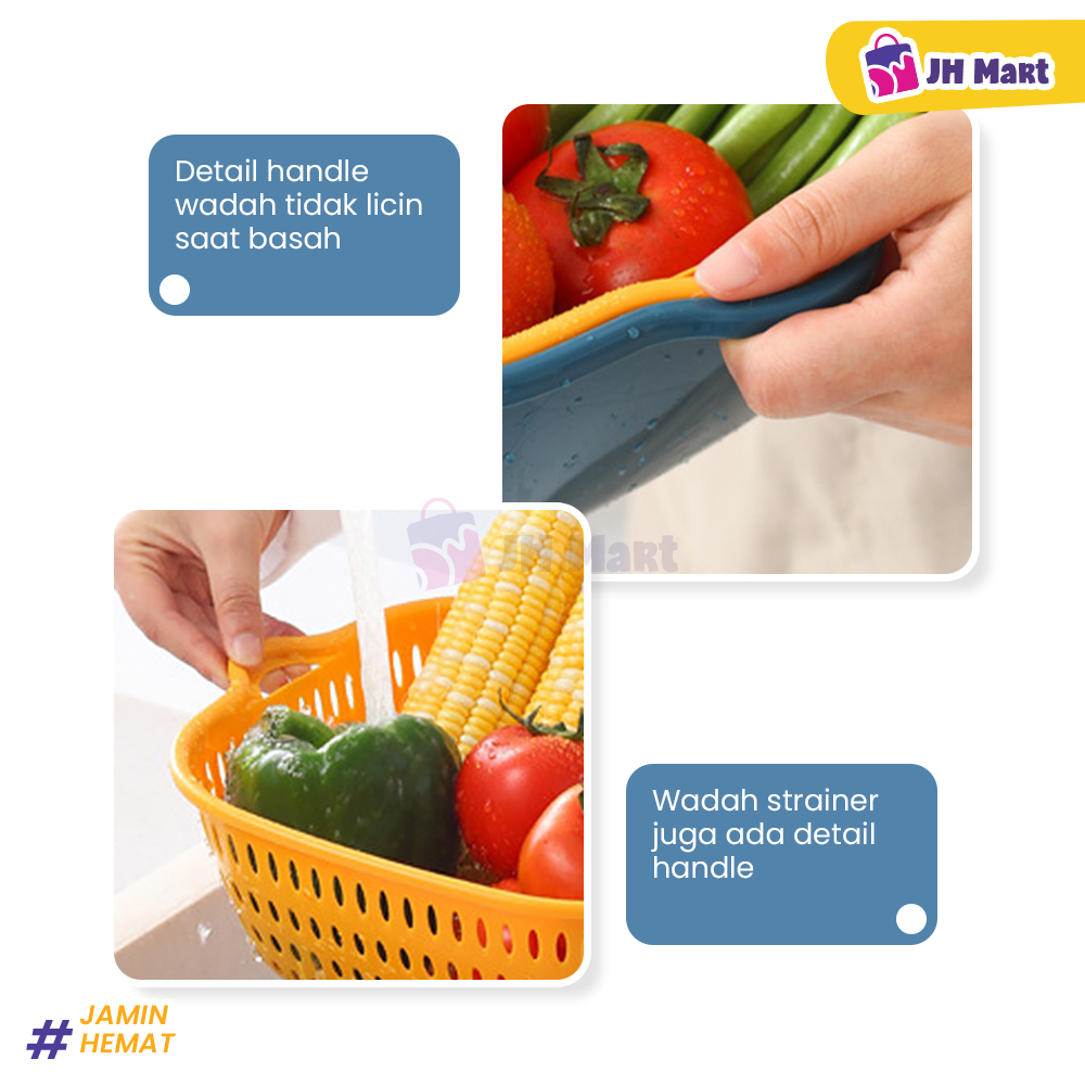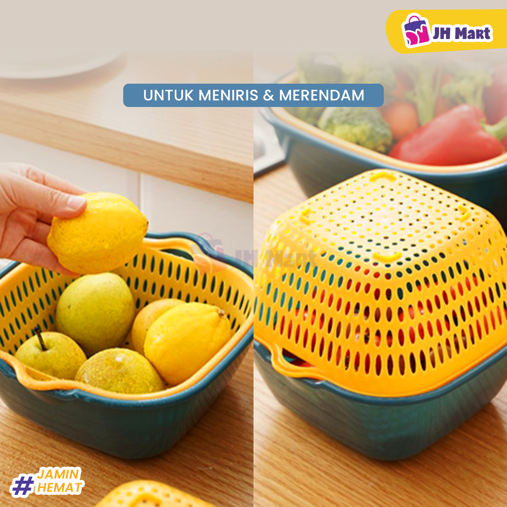 JHM - Baskom Buah Sayur 8in1 Multifungsi Saringan Cuci Lipat Serbaguna Plastik