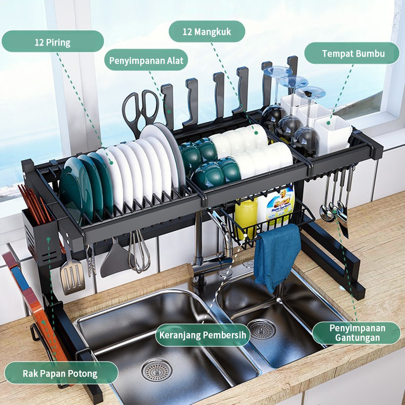 Rak Piring Wastafel Stainless Steel Rak Cuci Piring Wastafel Rak Wastafel Hitam Dan Peralatan Dapur Kokoh Kuat// PRODUK MURAH PROMO SALE