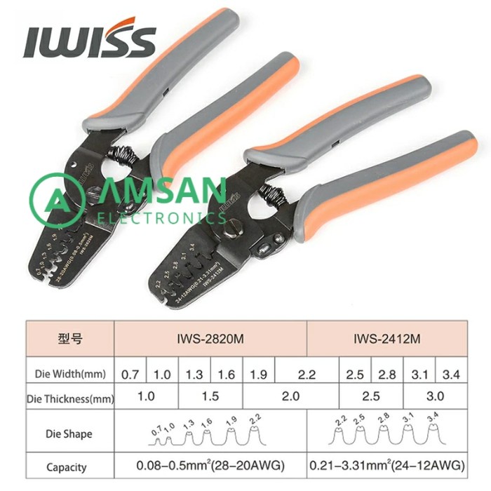 IWISS 2412M 2820M Tang Crimping JAM Molex Tyco JST 24-12 28-20 AWG