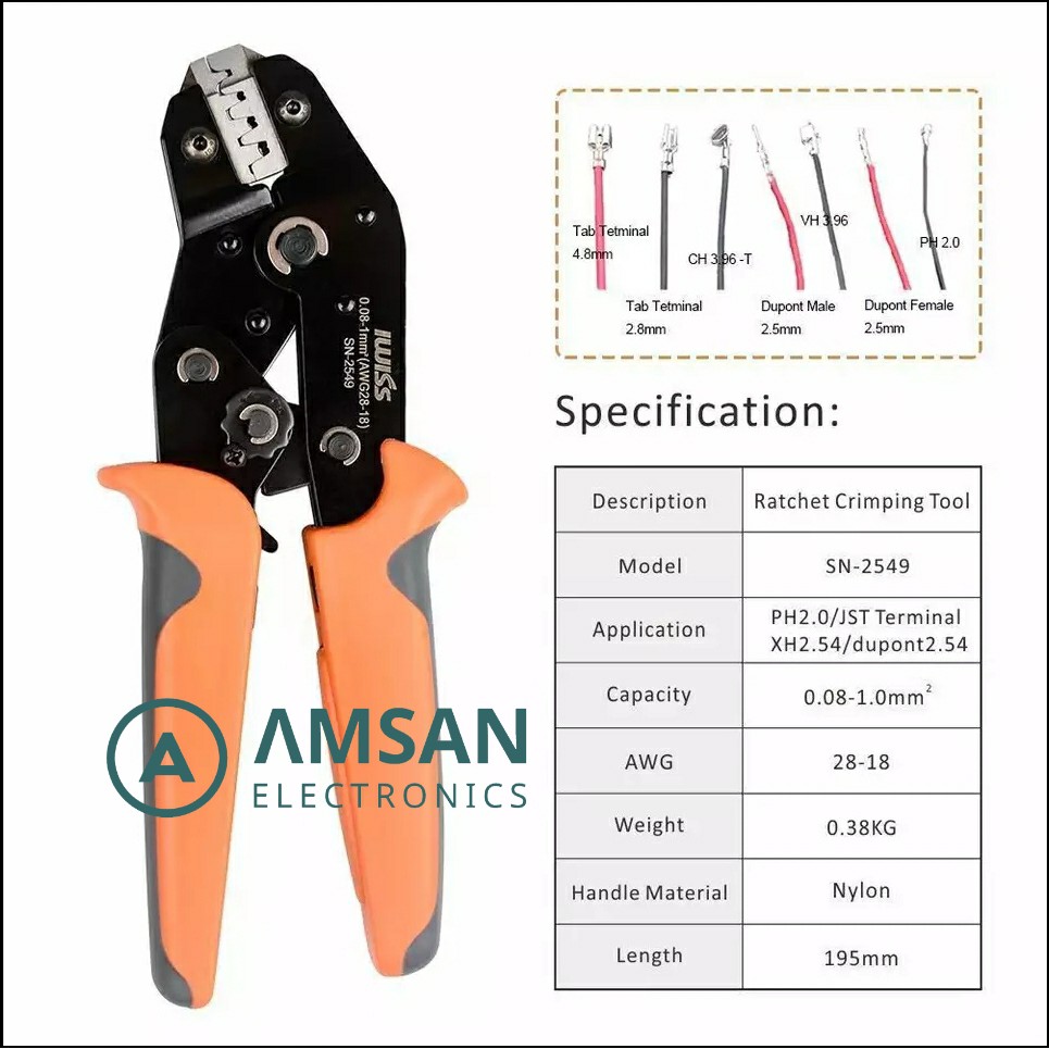 IWISS SN 2549 Crimping Tool AWG28-18 0.08-1.0mm Dupont JST KF2510