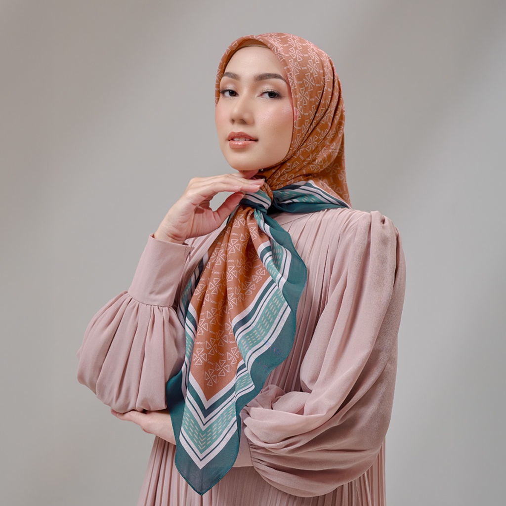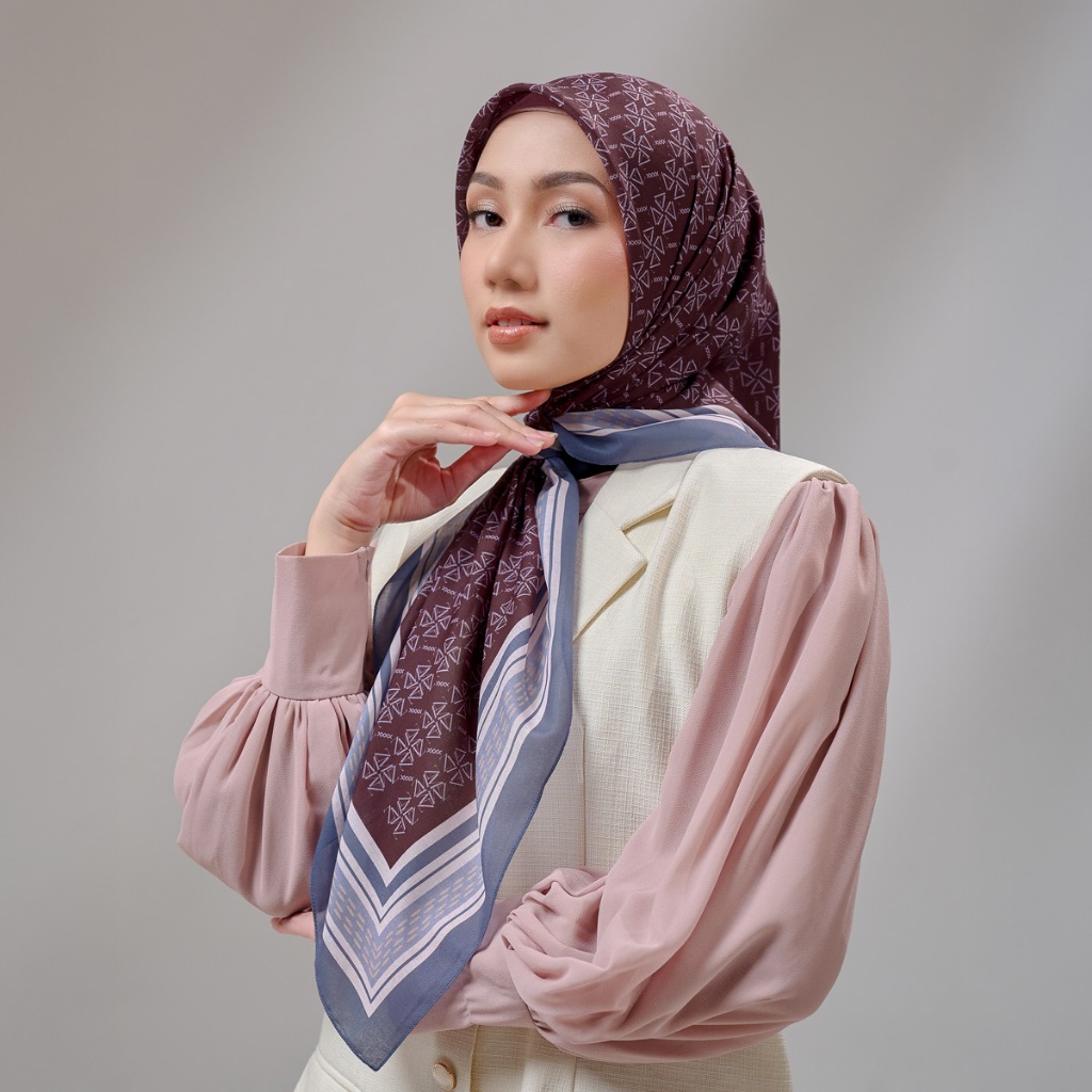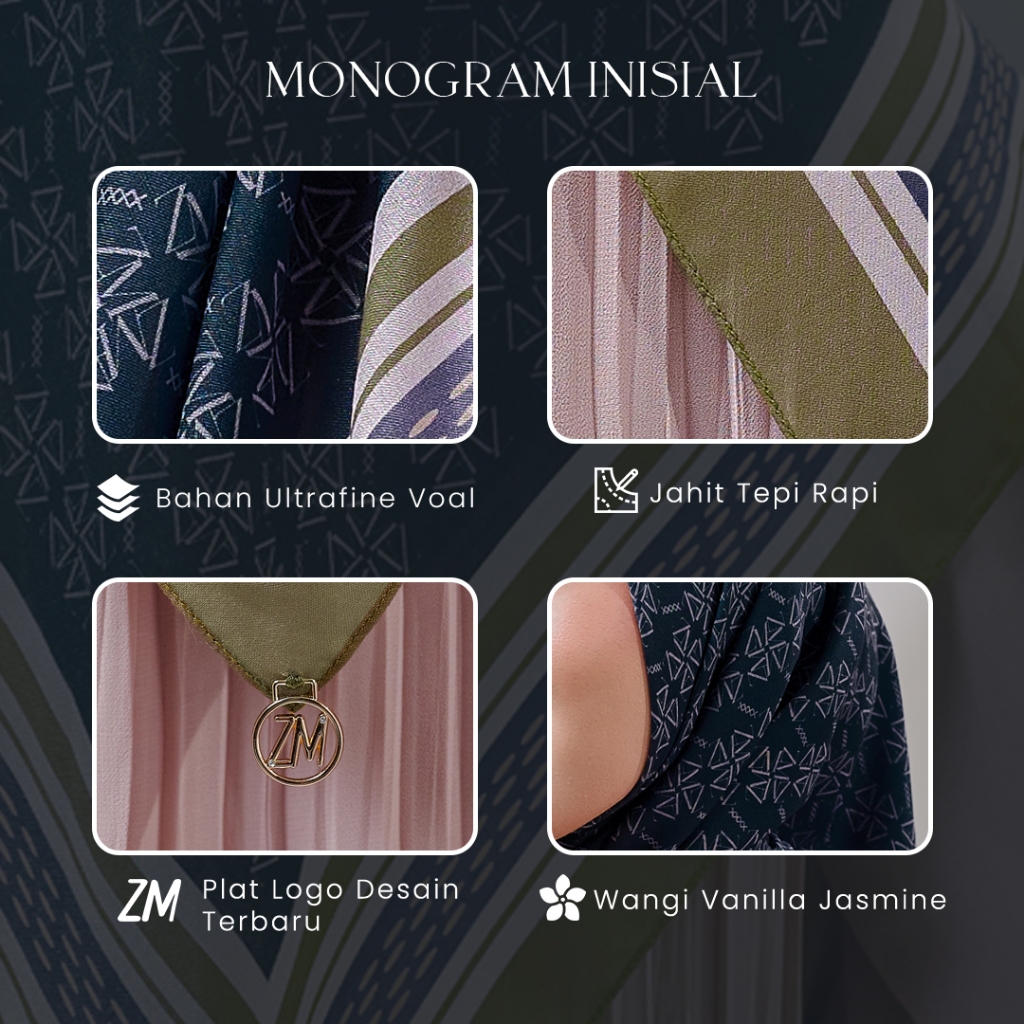 [INCLUDE PREMIUM HARD BOX] ZM Zaskia Mecca - Inisial Monogram Series Scarf Voal - Hijab Square Motif Kerudung Segi Empat
