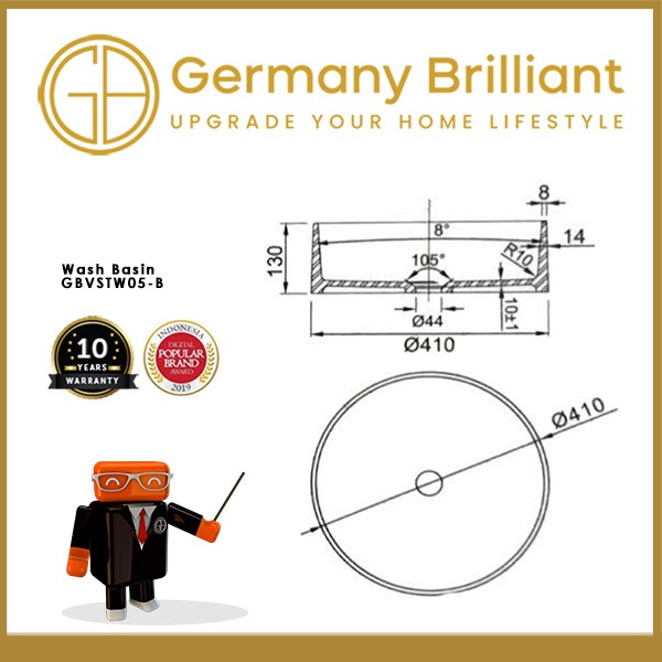 Germany Brilliant Wastafel Meja Granite GBVSTW05-B