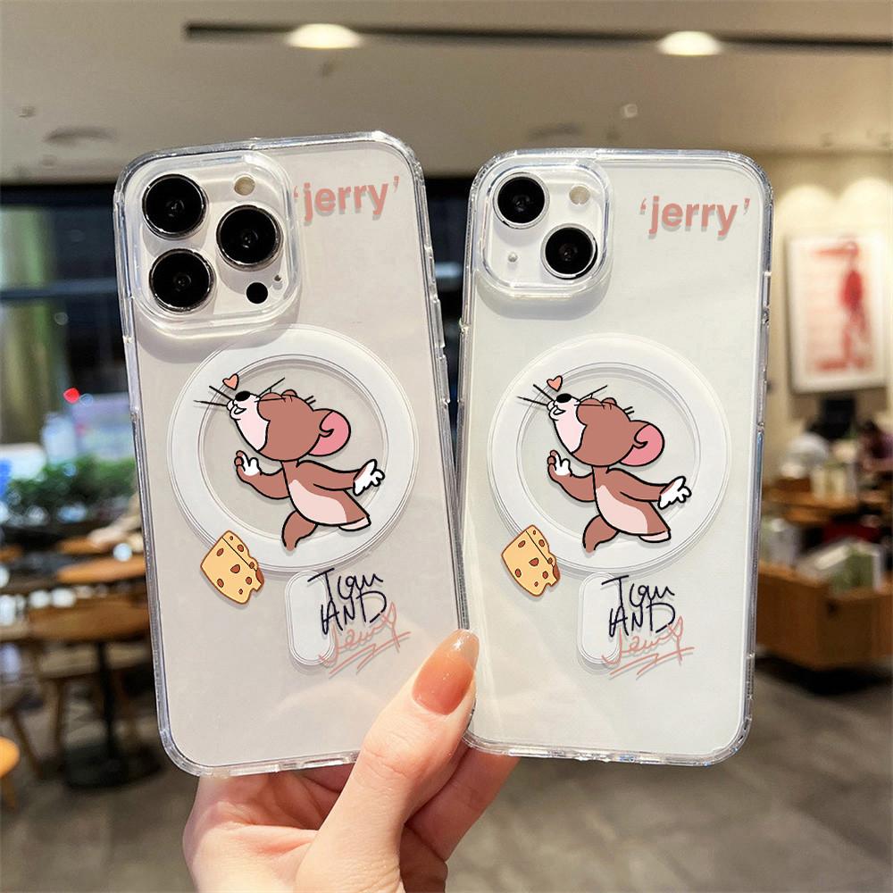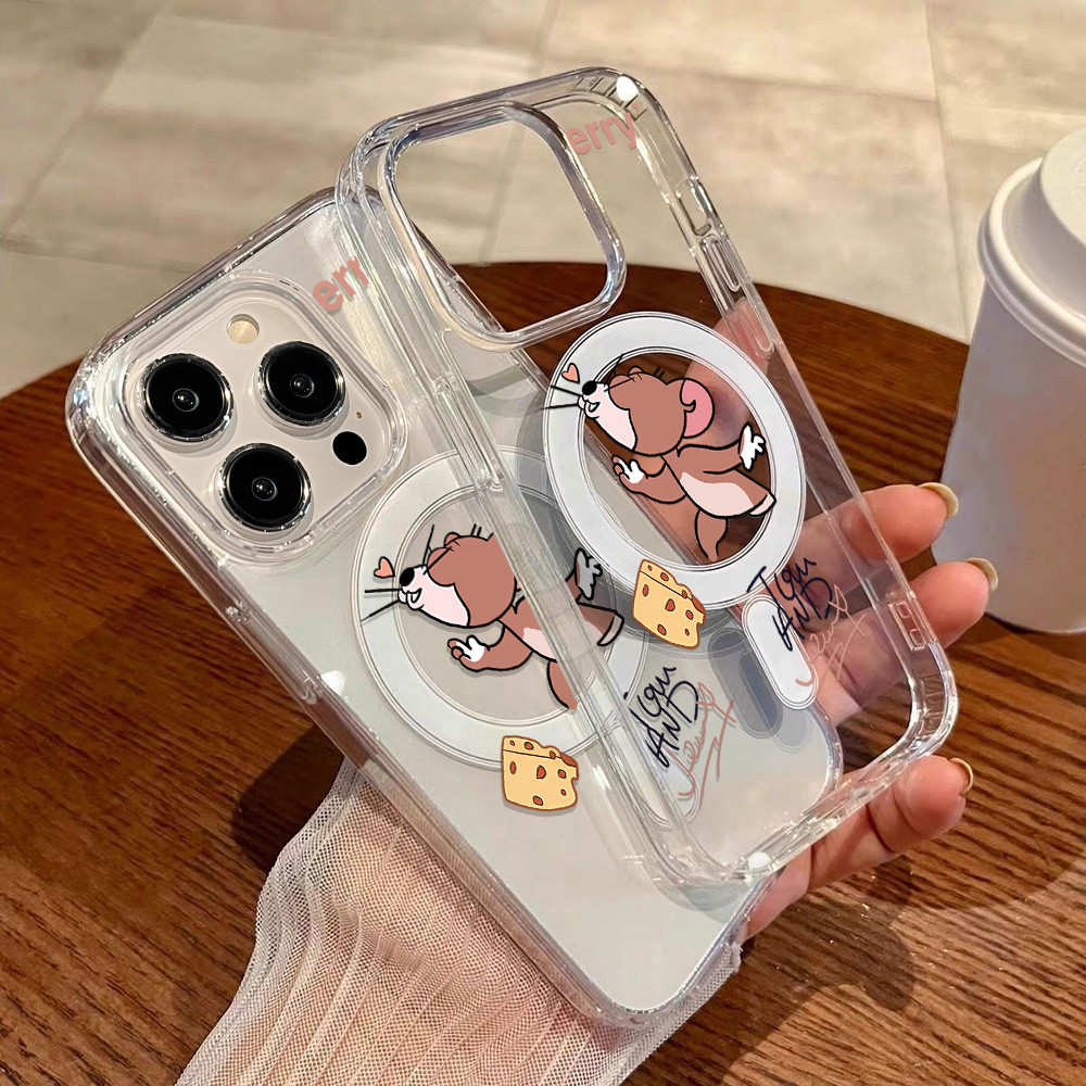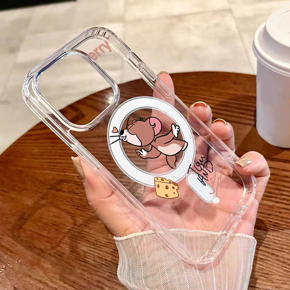 Magnetic Case For Samsung A16 A56 A55 A15 A54 A36 A35 A06 A26 5G Hardcase Samsung S25 Ultra Case Acrylic Clear Case Wireless Charging Case Tikus kartun Lucu Casing Hard Case HP Silikon Case Shockproof Phone Case