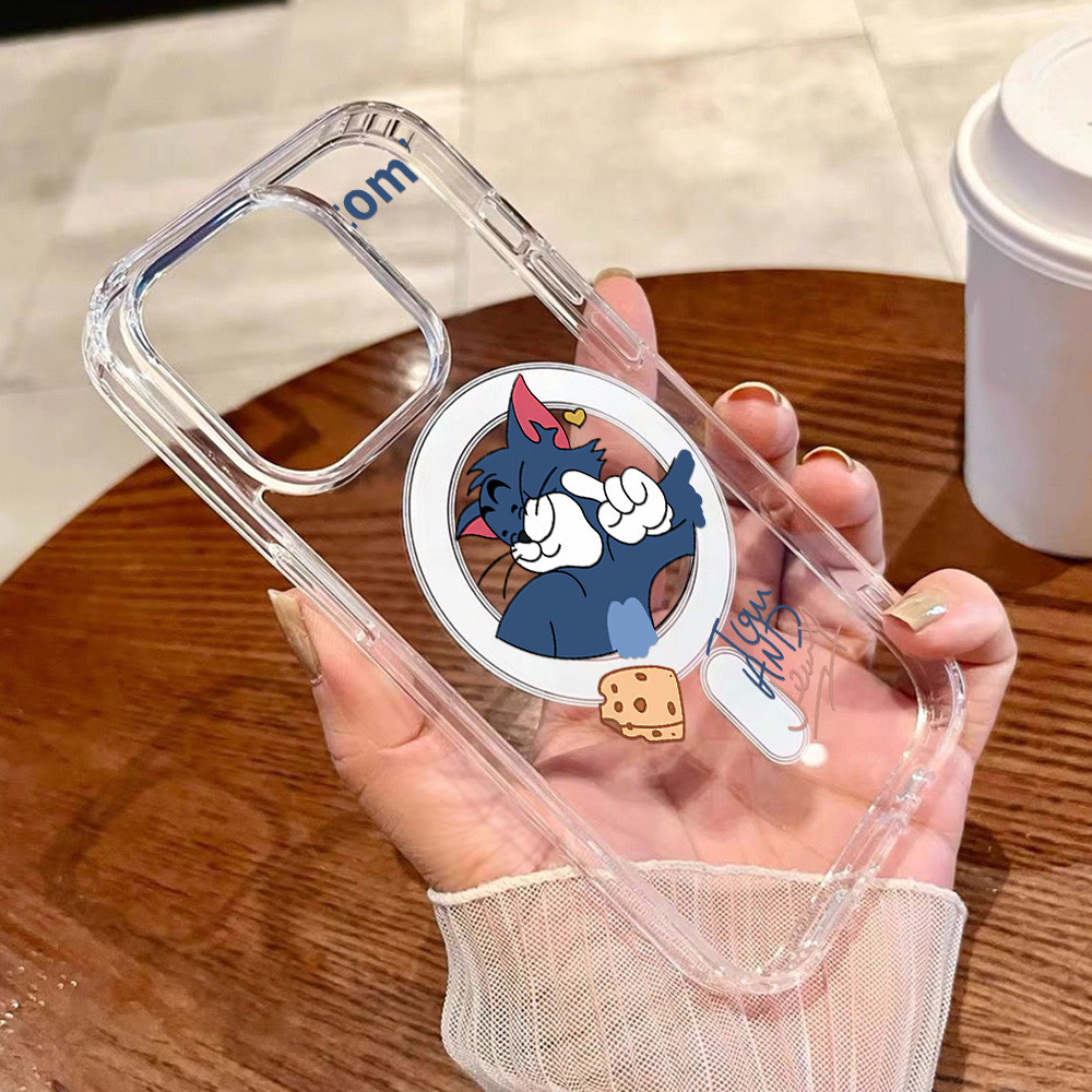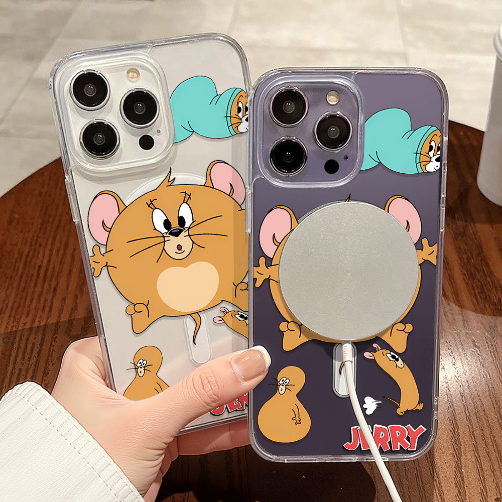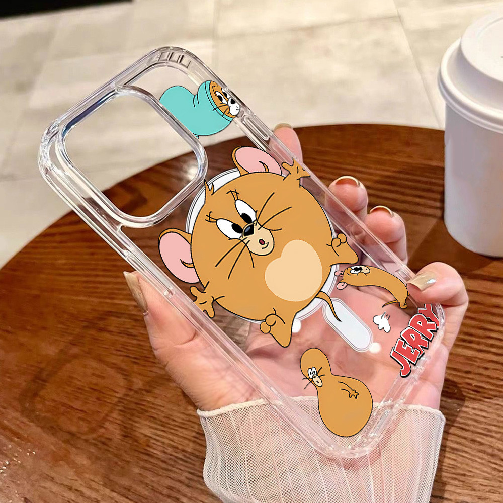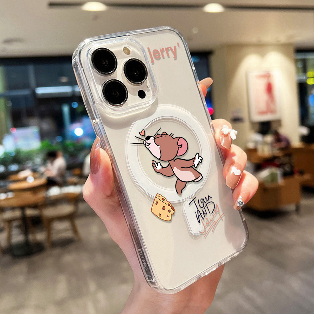 Magnetic Case For Samsung A16 A56 A55 A15 A54 A36 A35 A06 A26 5G Hardcase Samsung S25 Ultra Case Acrylic Clear Case Wireless Charging Case Tikus kartun Lucu Casing Hard Case HP Silikon Case Shockproof Phone Case