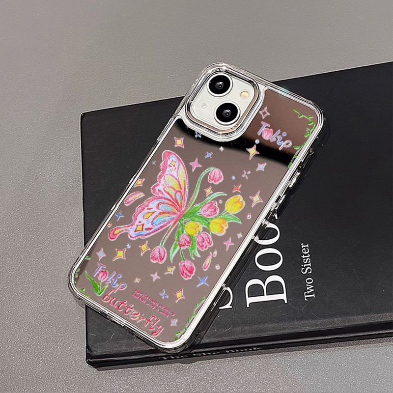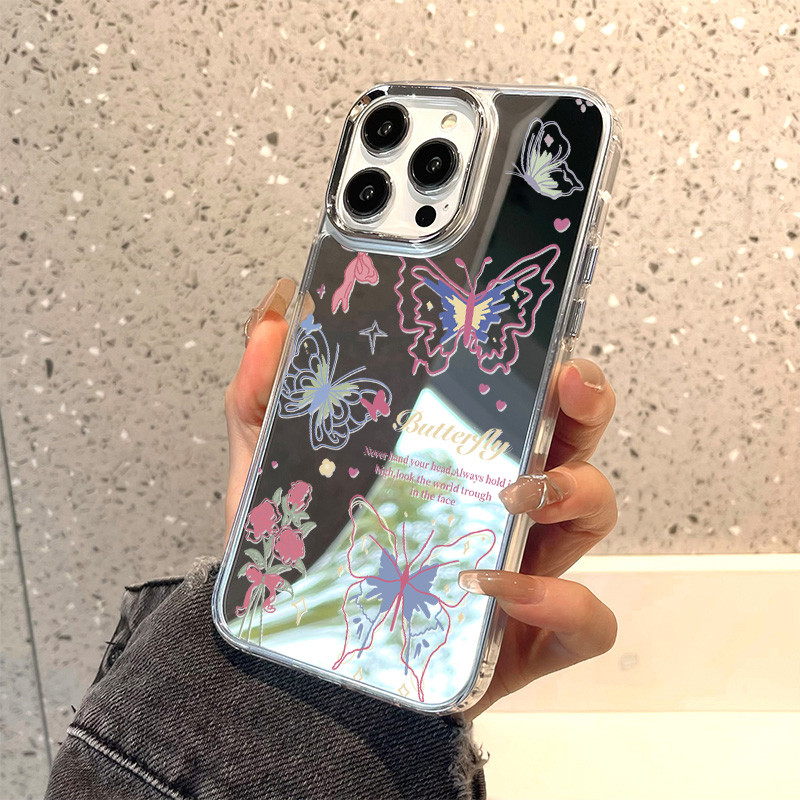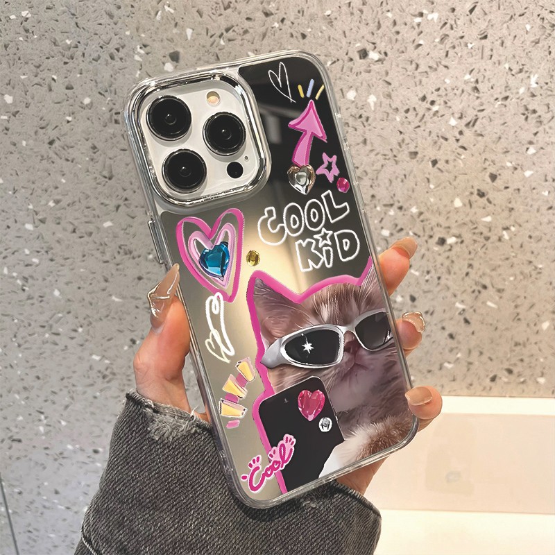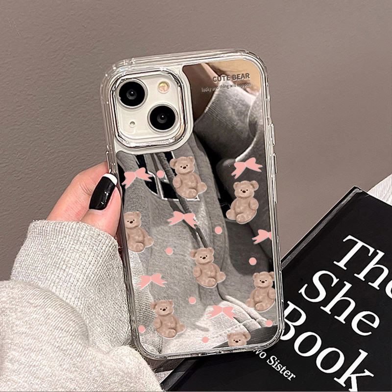 case aesthetic Untuk iphone 13 14 11 16 pro max 15 Pro Max 12 14 Pro Max 12 pro 13 iphone 14 Pro 14 13promax 11 Promax case ip lucu unik Shockproof Antijatuh Dengan Cermin Kosmetik