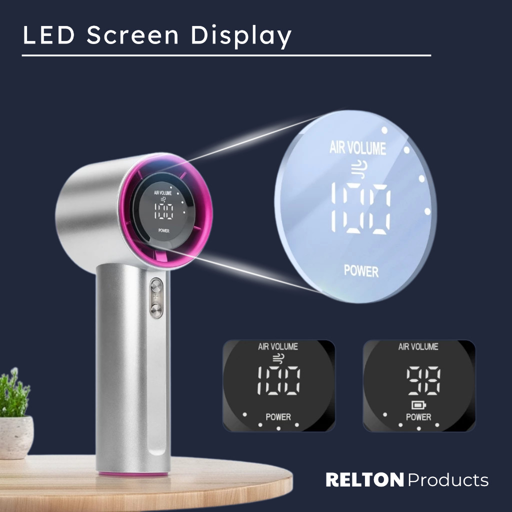 S001 Kipas Turbo 100 Gear Speed RELTON Ultra High-Speed Handheld Fan 100 Level Speed LED Digital Display RELTON