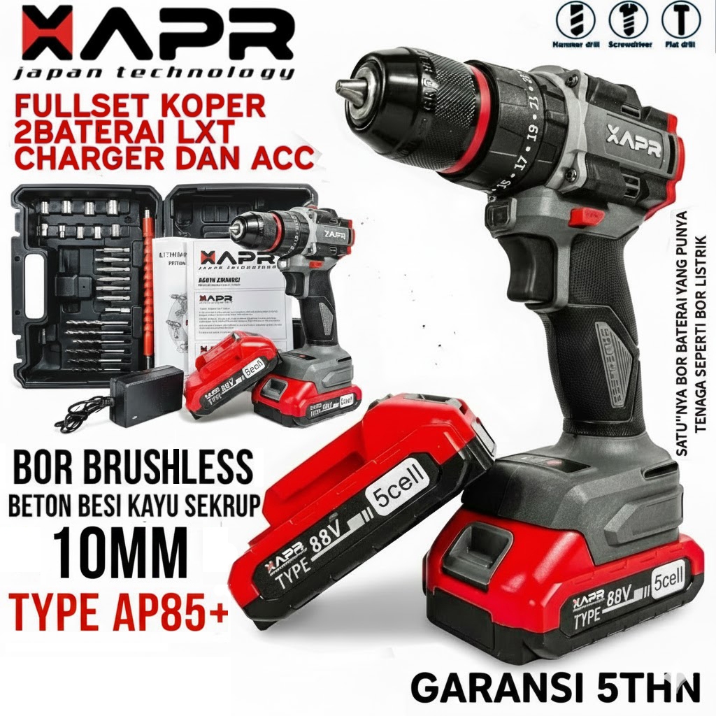 APR BOR CORDLESS TYPE AP85+ impact drill BRUSHLESS mesin bor 10mm keyless auto lock GARANSI RESMI