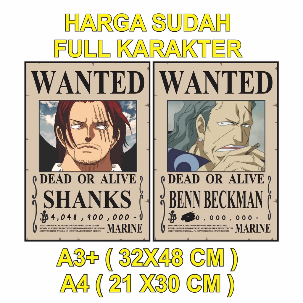 Poster Buronan One Piece Hiasan Dinding Anime Full Karakter AKAGAMI PIRATES A3/A4 Termurah