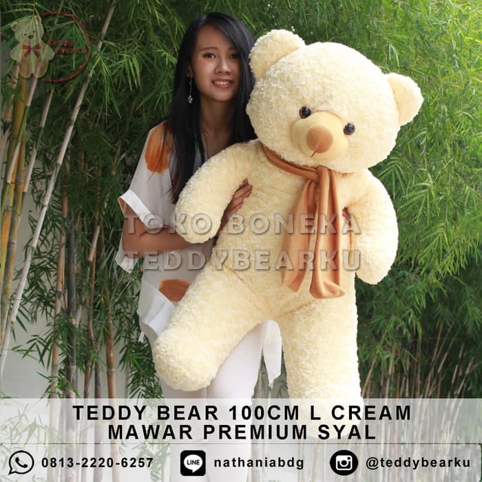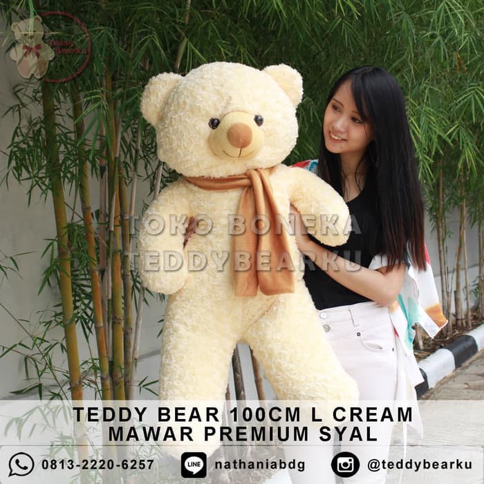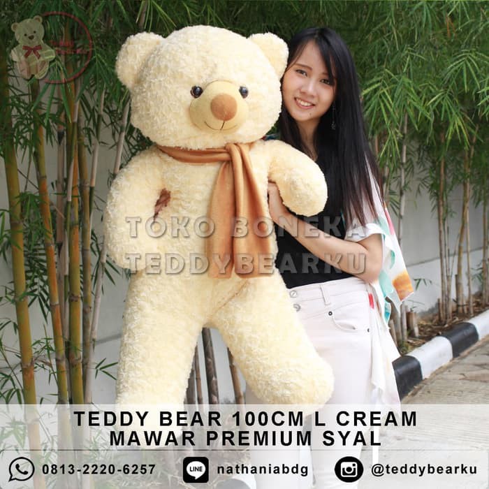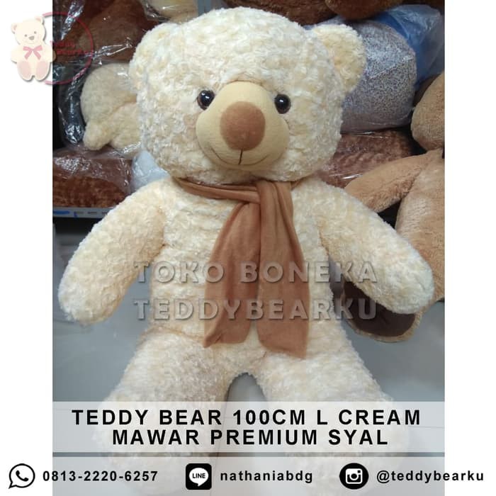 Boneka teddy bear cream l 100cm premium + syal (langka)