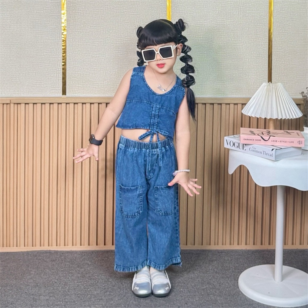 CILUPBA KIDS - Setelan Jeans Anak Crop Top - One Set Celana Kulot Jeans Anak Perempuan Korean Style Fashion Usia 1-6 Tahun
