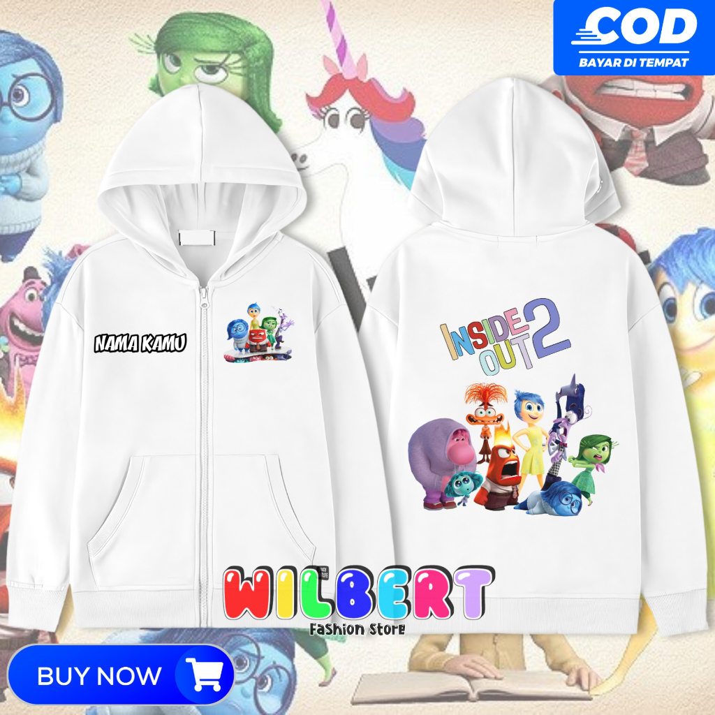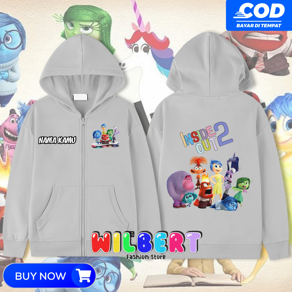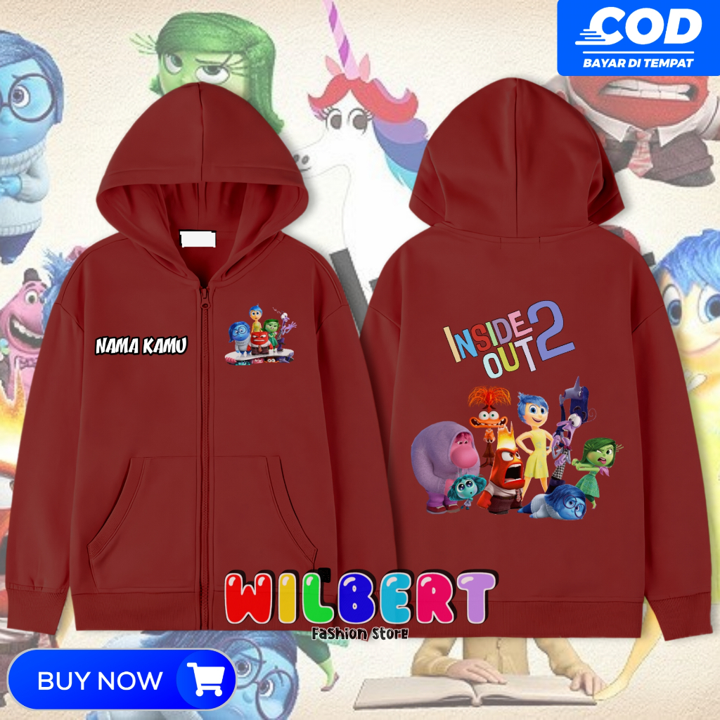 Hoodie Zipper Anak Inside Out 2 / Jaket Resleting Free Nama