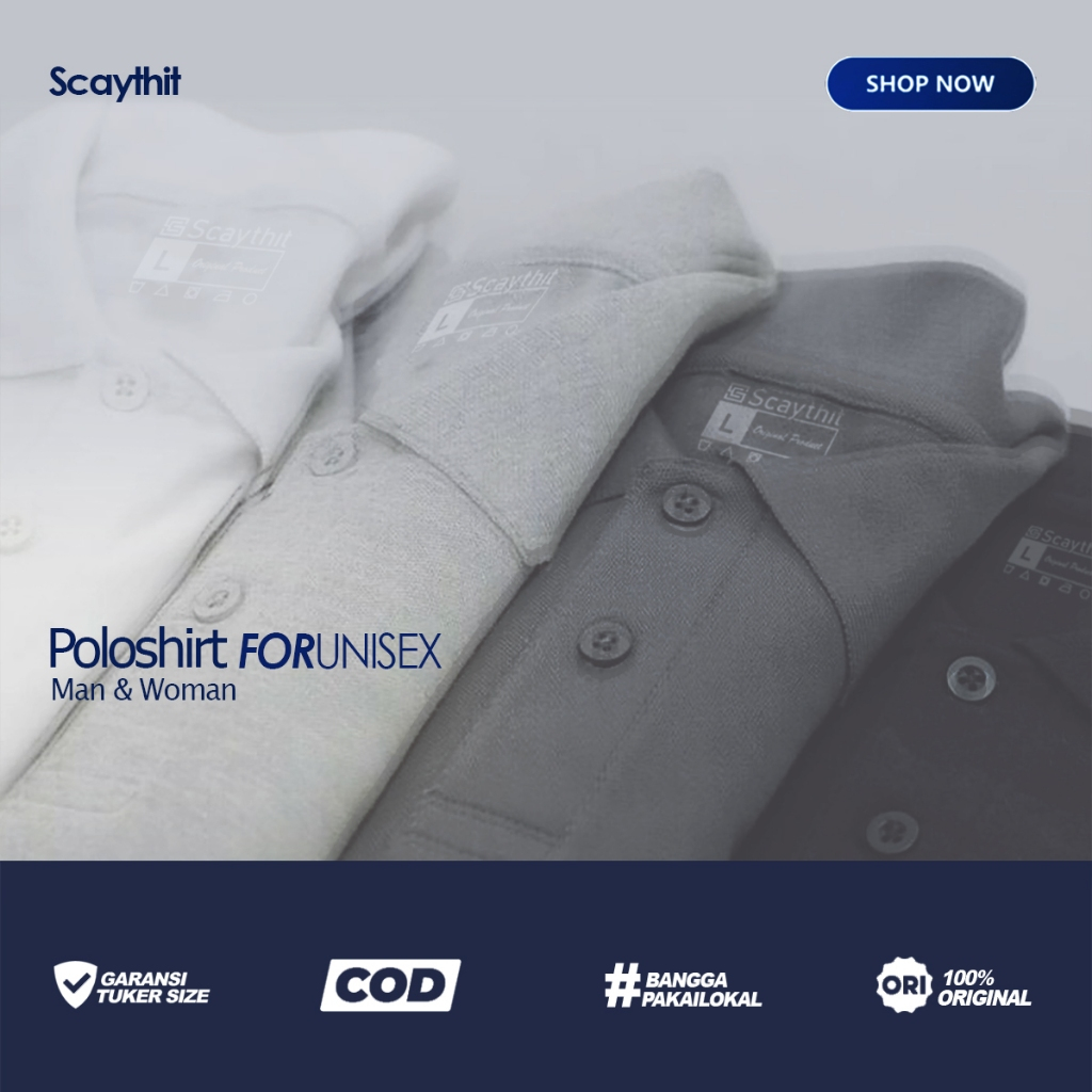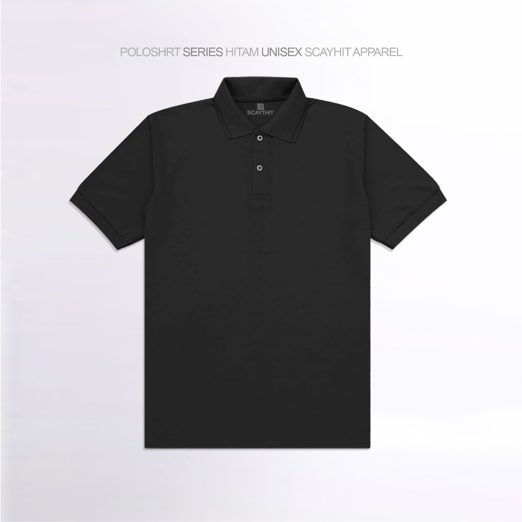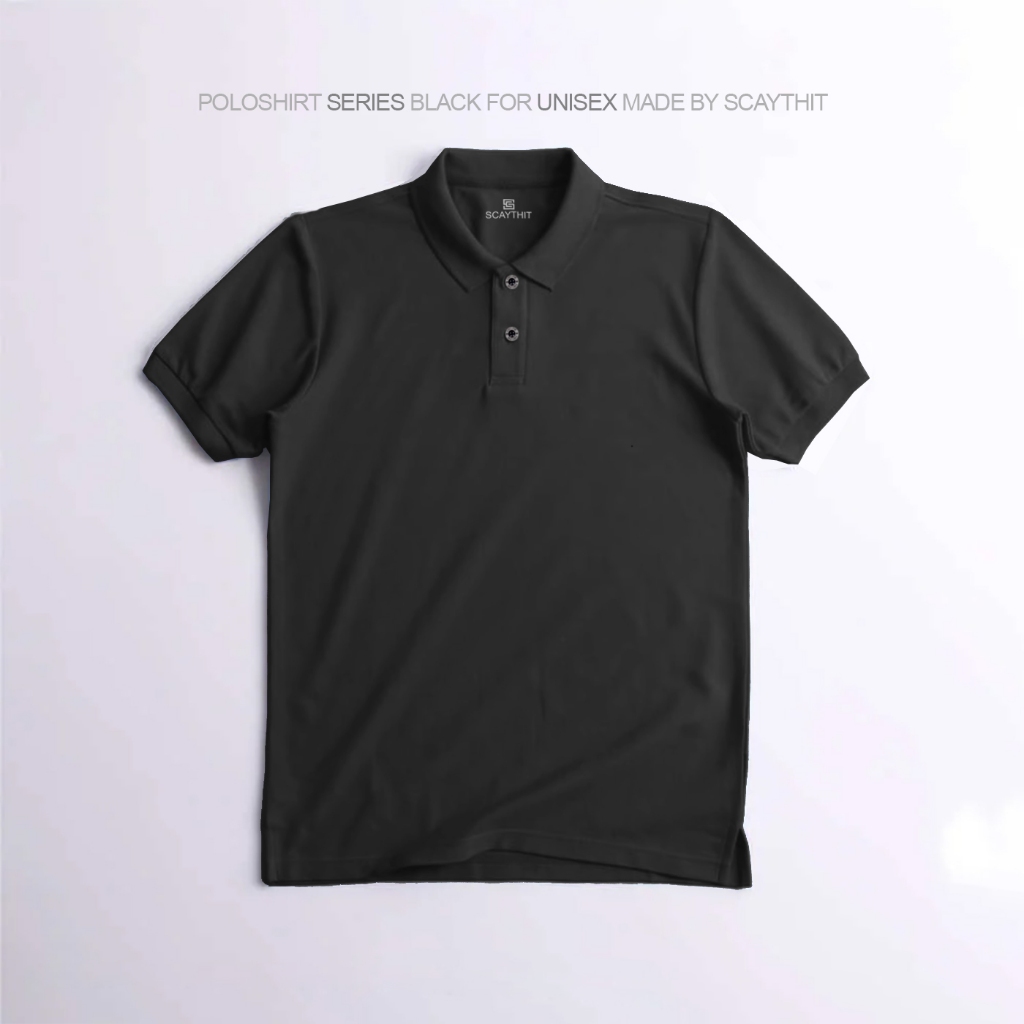 Scaythit - Baju Polo Shirt Unisex Pria & Wanita Polo Kerah Casual Pendek Hitam