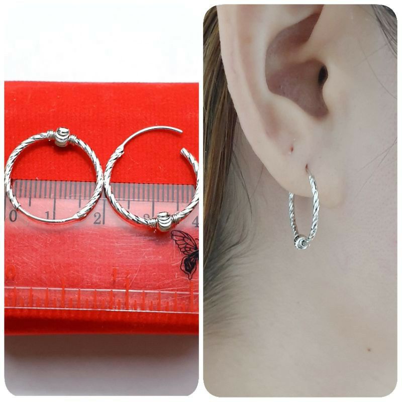 Anting Bulat Gipsy Gipsi Silver 925 Lapis Emas Putih - Fashion Perak 925 Anting Wanita Korea