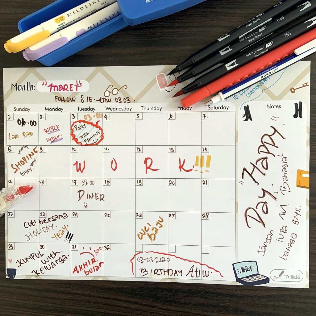 [TULIS.ID] Colorful Monthly Plan Memopad A4 Matte Paper 150 Gram