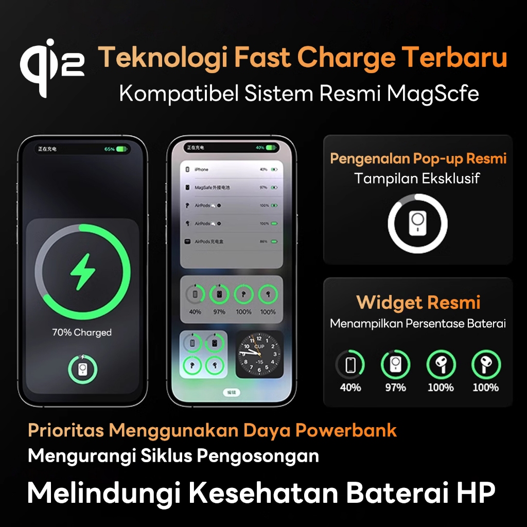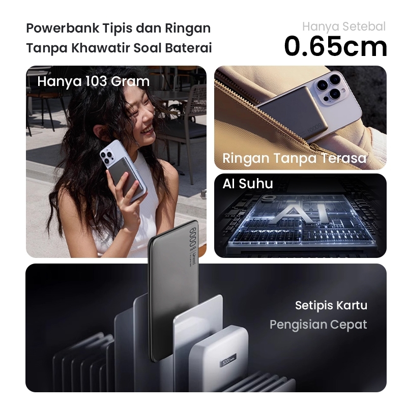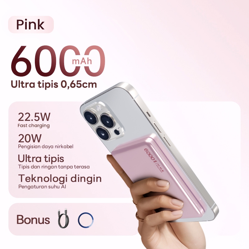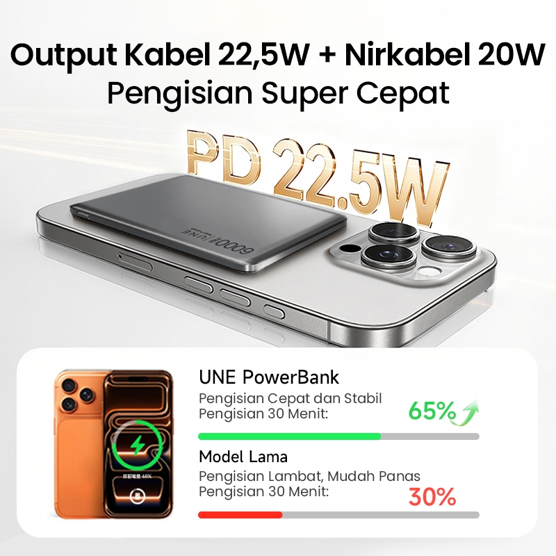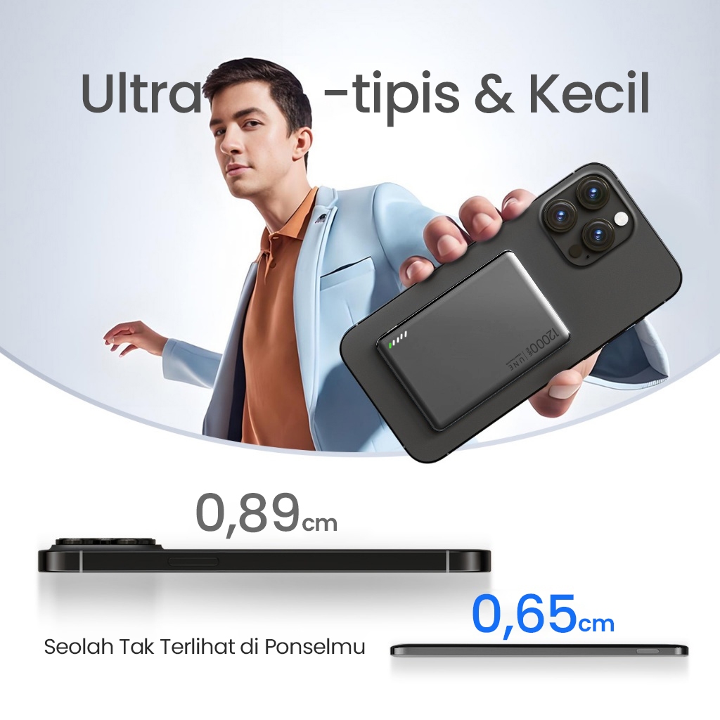 [Ultra tipis 0,65cm] UNE Powerbank Fast Charging Mini Magnetic Wireless 12000mAh PD22.5W Type C
