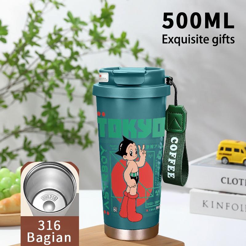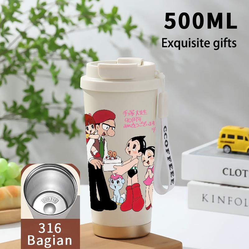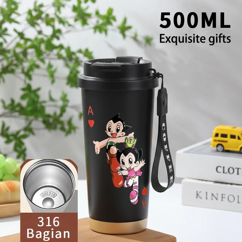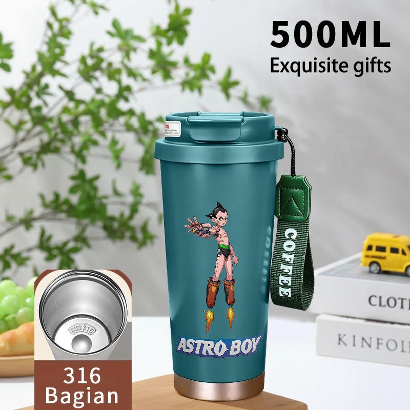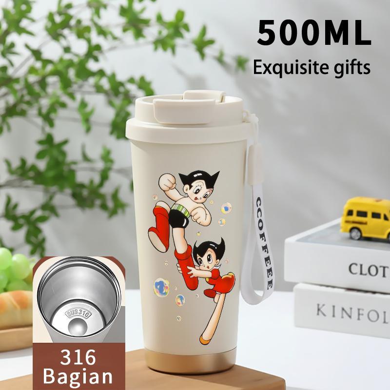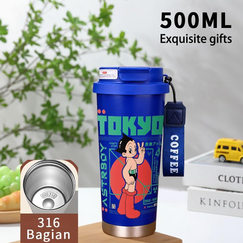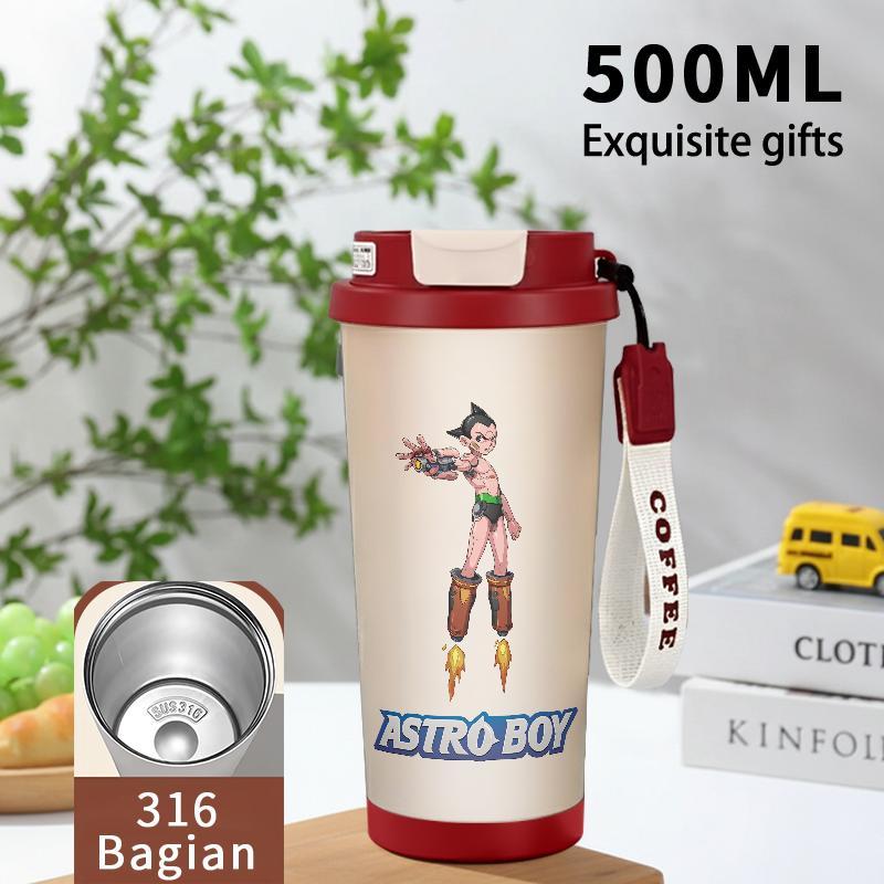 Tumbler Aesthetic Astroboy Botol Minum Stainless Steel Tumblr Viral CUP 500 ML Termos Coffee Keep Cold Hot Tambler Kartun Cartoon Lucu Cool Cute Portable Cangkir Kopi Gift - Tutup Kedap, Bisa Untuk Es