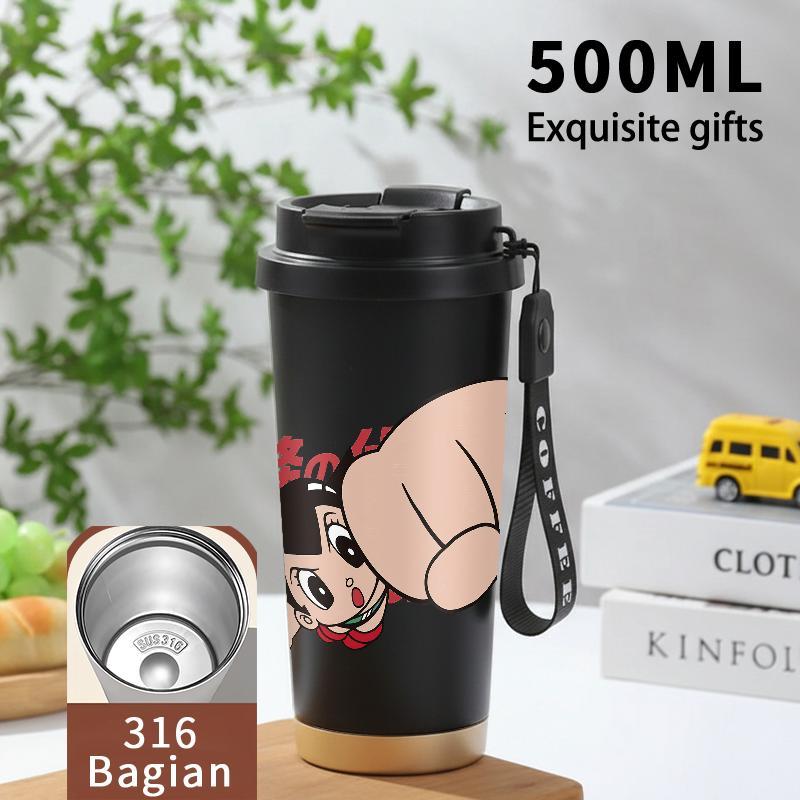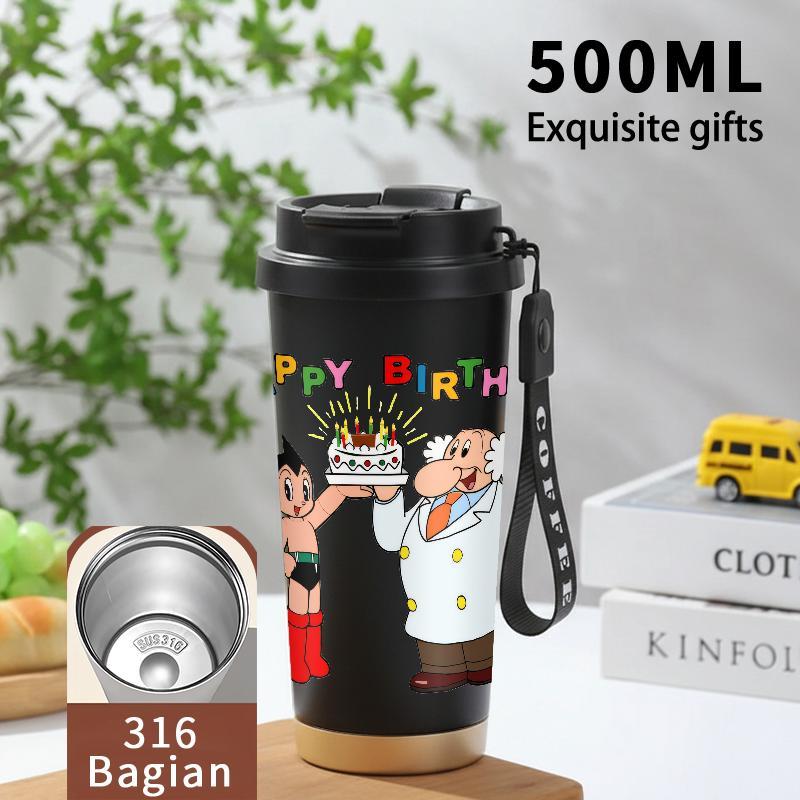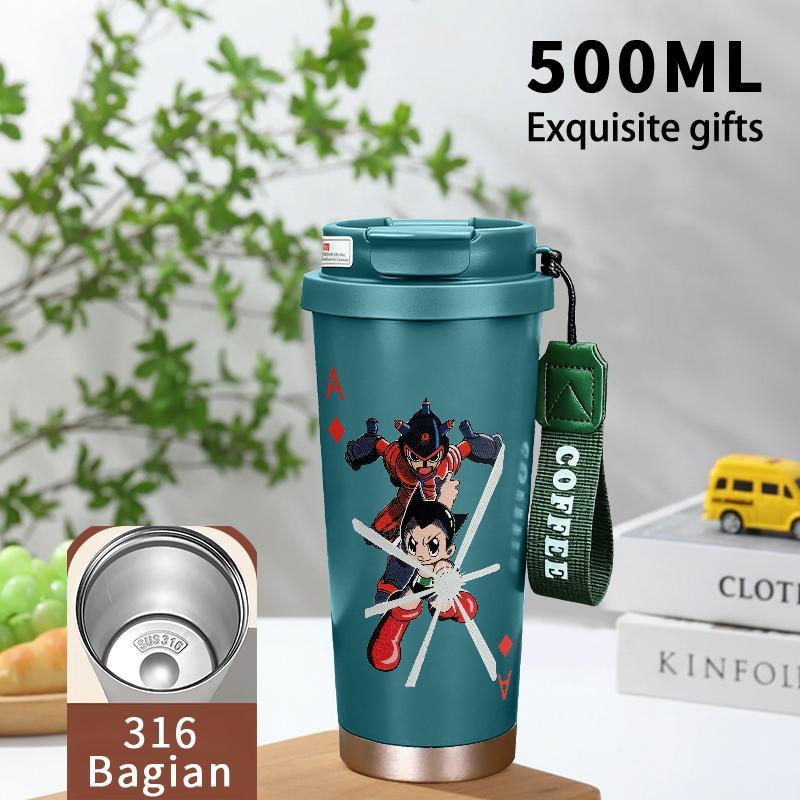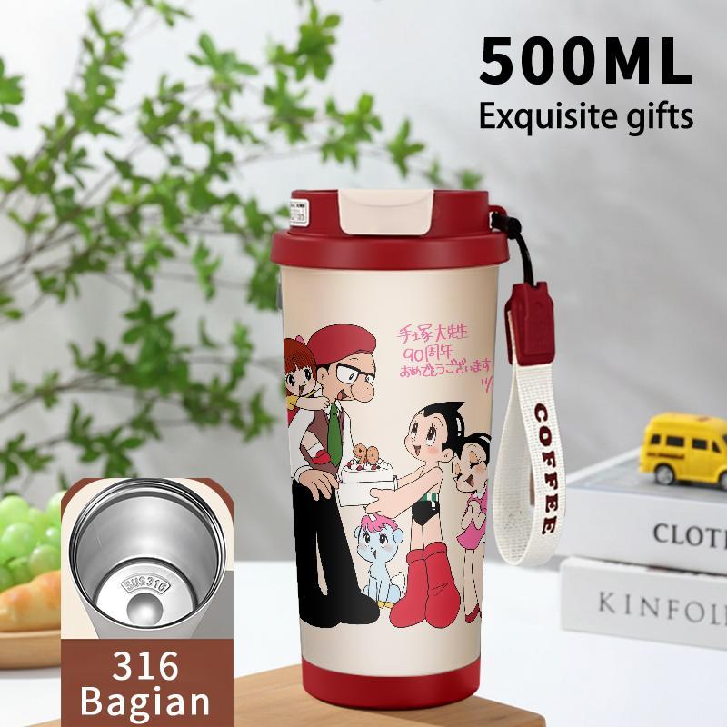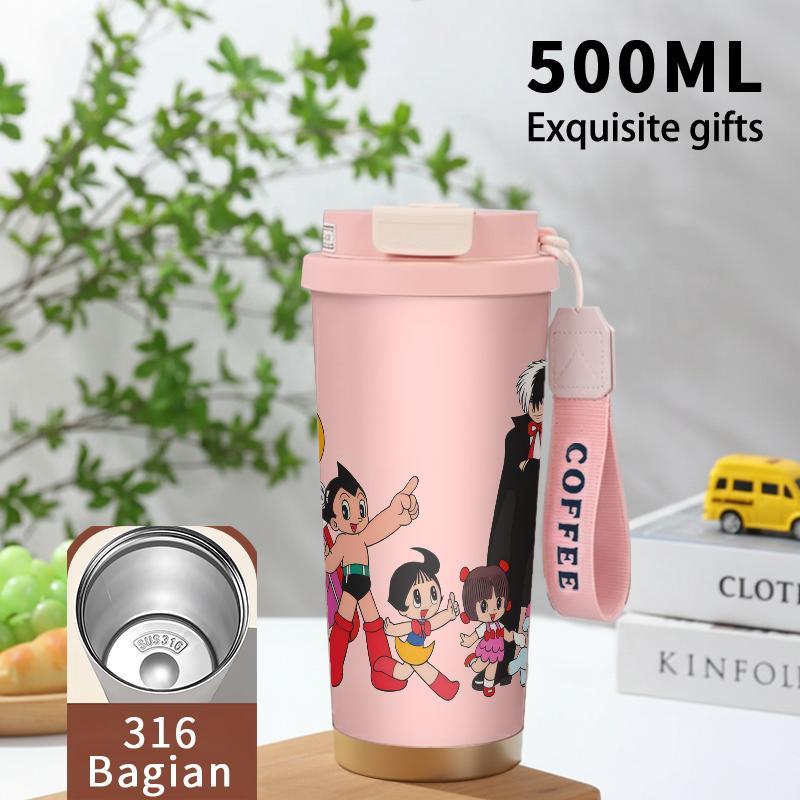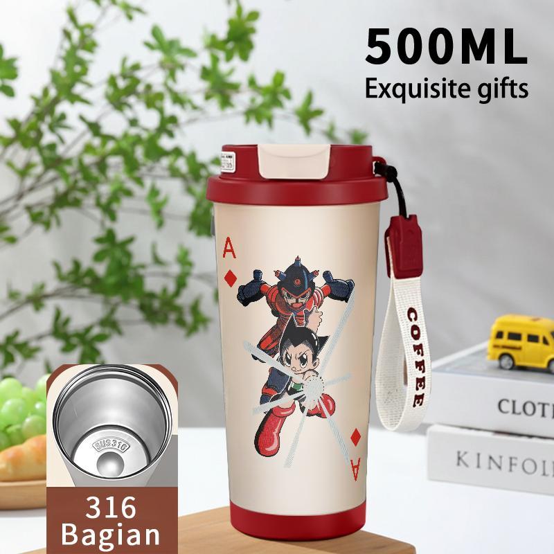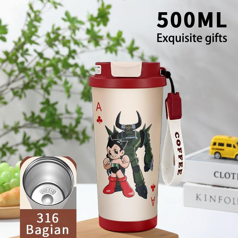 Tumbler Aesthetic Astroboy Botol Minum Stainless Steel Tumblr Viral CUP 500 ML Termos Coffee Keep Cold Hot Tambler Kartun Cartoon Lucu Cool Cute Portable Cangkir Kopi Gift - Tutup Kedap, Bisa Untuk Es