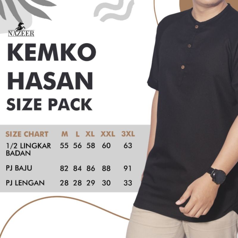 KEMEJA KOKO PRIA DEWASA KEMKO HASAN ORI NAZEER / BAJU ATASAN PRIA MUSLIM / KOKO LENGAN PENDEK PRIA DEWASA / BAJU PRIA FASHION MUSLIM / KEMEKA KOKO HITAM / KOKO JUMBO / KOKO PUTIH / KOKO CREAM