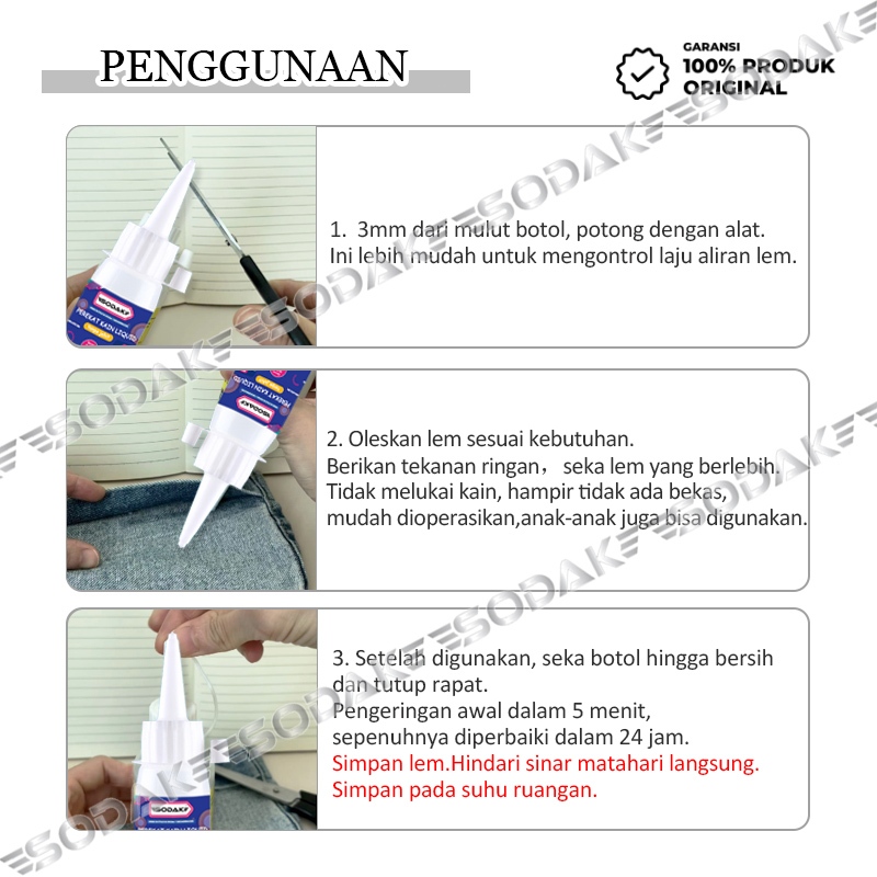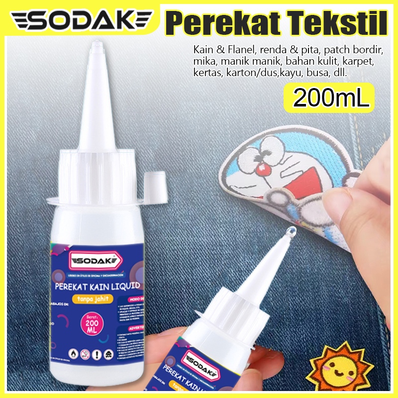 SODAK Lem Patch Bordir 200mL / Lem Kain Tanpa Jahit Tahan Air / Perekat Kain / Lem Textile Kain Serbaguna 001