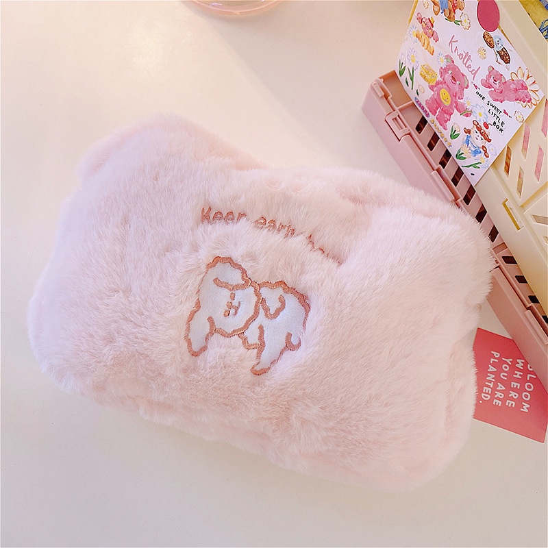 Tempat Pensil Bulu/ Pouch Make Up Bulu Motif Large