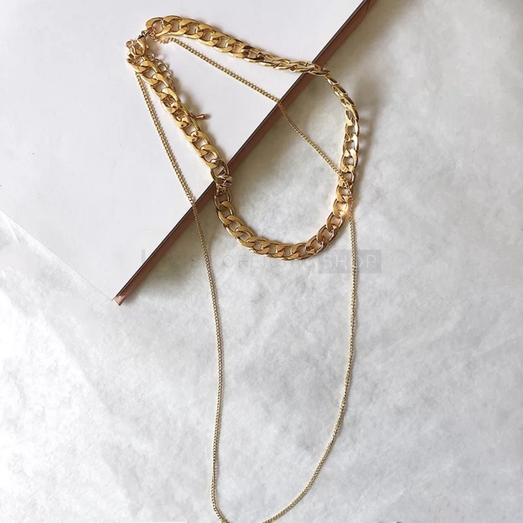 RICISE - Kalung Rantai Multi Layer Besar Warna Gold Silver Gaya Korea Retro Untuk Wanita Aksesoris Perhiasan Necklace Aesthetic Vintage - ACC231