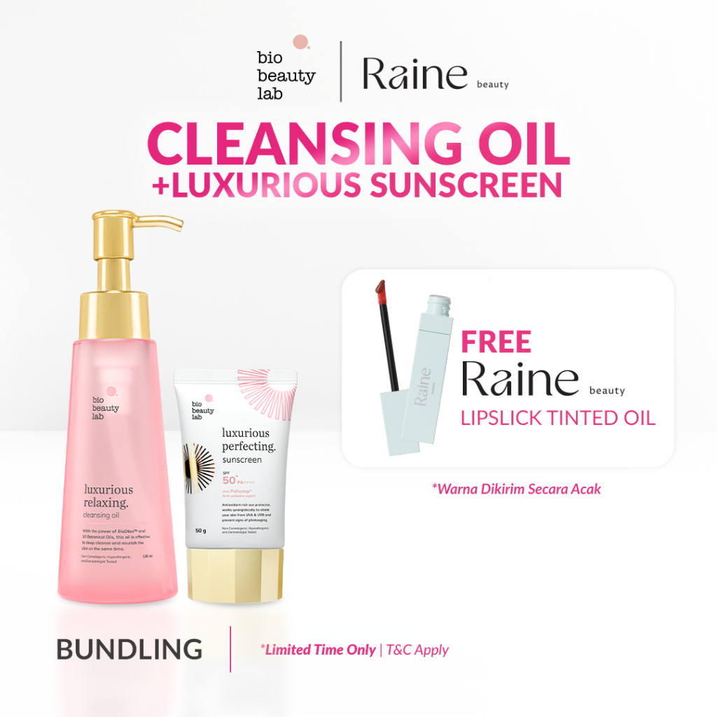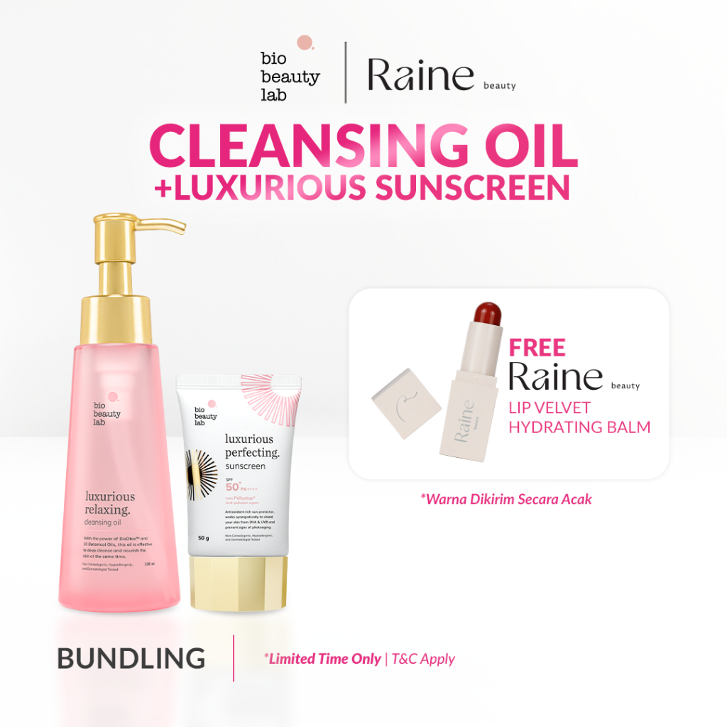 [BIO BEAUTY LAB x RAINE BEAUTY] Bio Beauty Lab Clean & Protect Duo | Luxurious Relaxing Cleansing Oil 126ml & Luxurious Perfecting Sunscreen SPF 50+ PA ++++ 50g - Free Lip Velvet Hydrating Balm | Membersihkan Makeup Waterproof | Skin Tint Non-Comedogenic