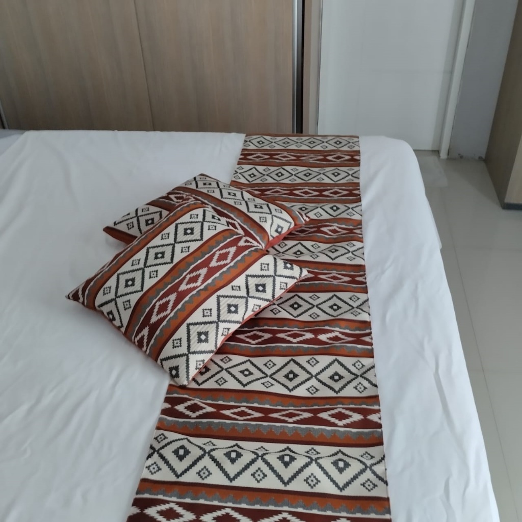 Set Bed Runner Premium 40x240cm 2 Sarung Bantal dan 40x180cm 1 Sarung Bantal, Kain Sofa Tebal Motif Elegan Cocok Tempat Tidur Double ataupun Single