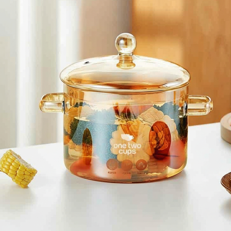Panci Kaca Borosilicate Transparan Tahan Panas | Glass Cooking Pot Estetik untuk Sup & Rebus