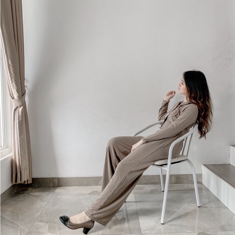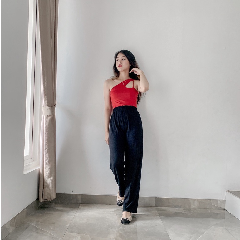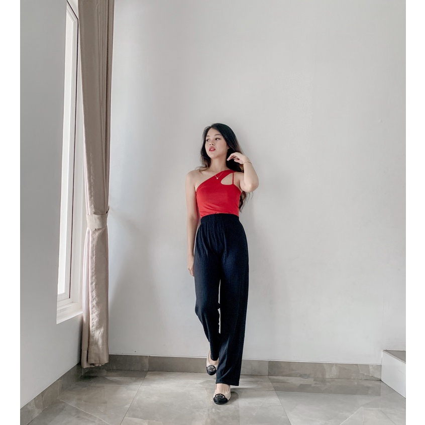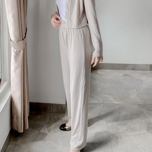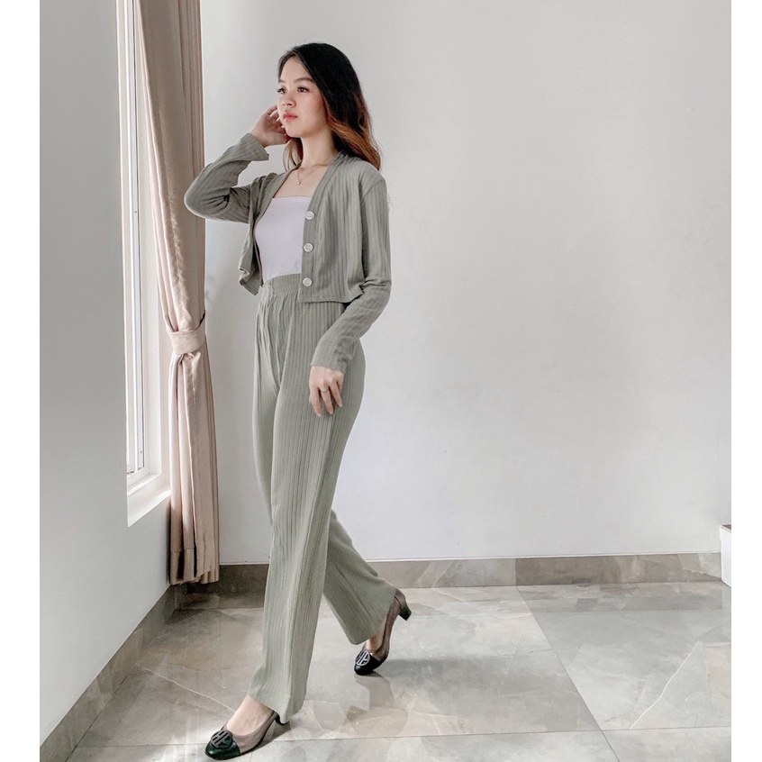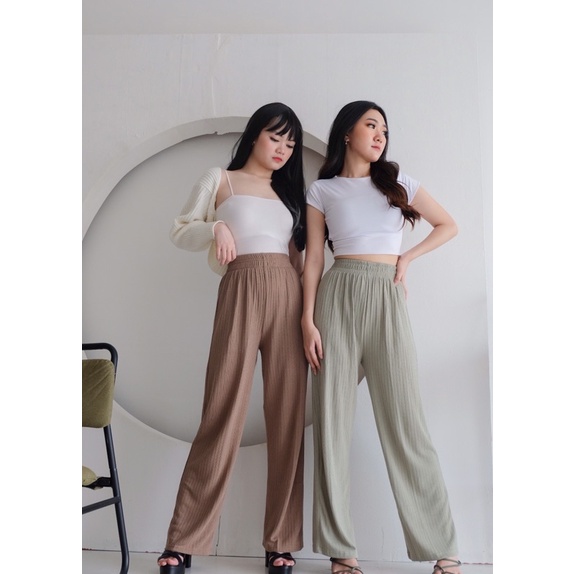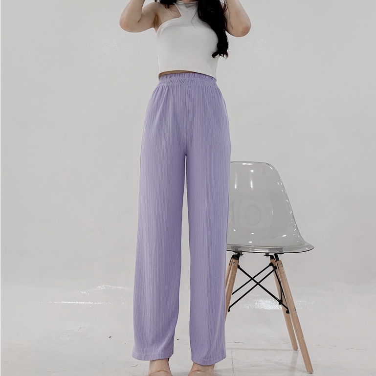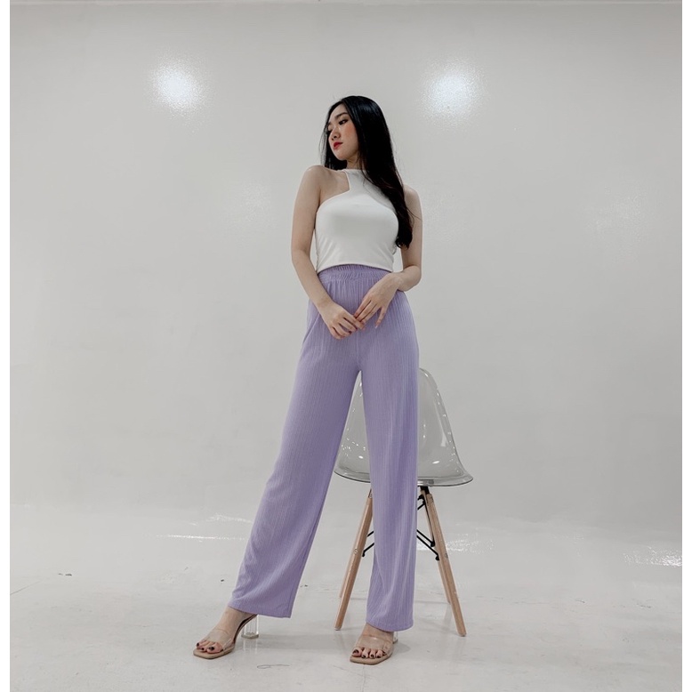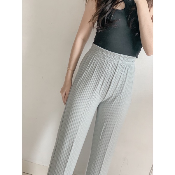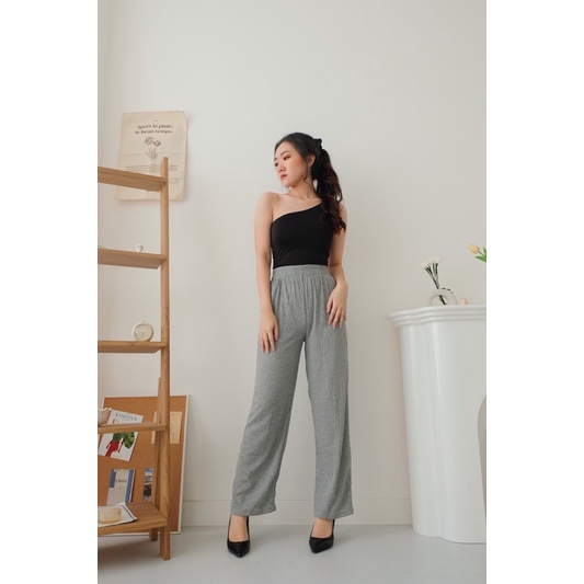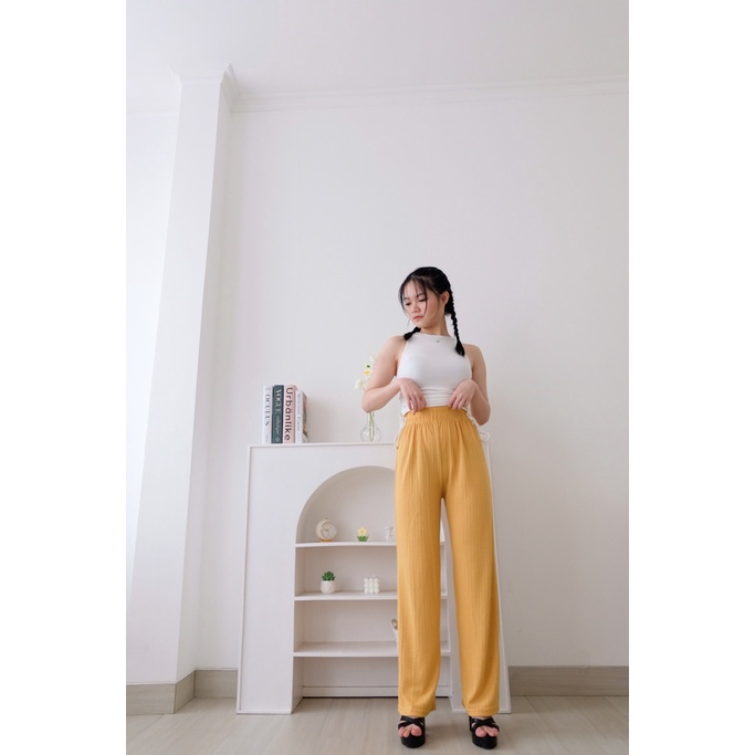 MOUISELLE Yoora Pants | Knit Highwaisted Pants - Korean style pants premium rib knit