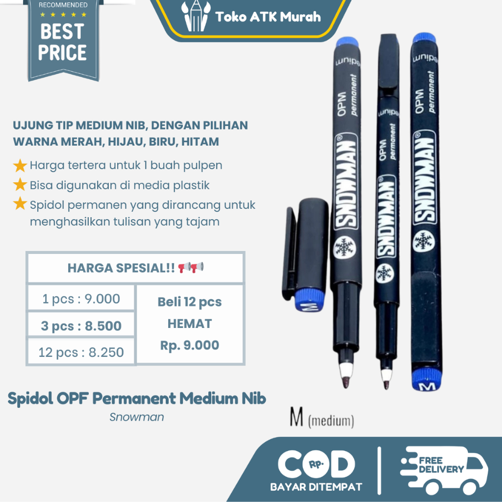 Spidol Snowman OPM Permanent Medium Nib - Snowman Permanent Marker Medium Tip - Spidol OHP Tinta Permanen