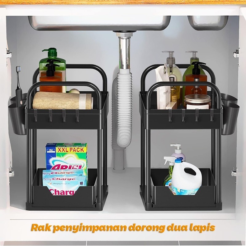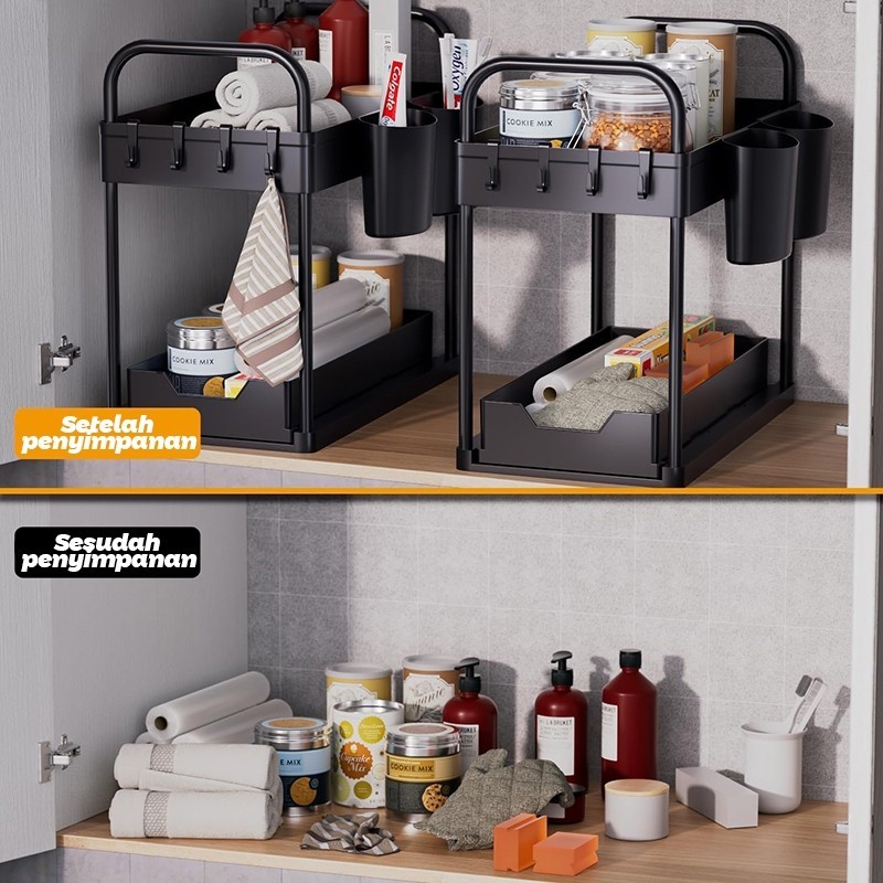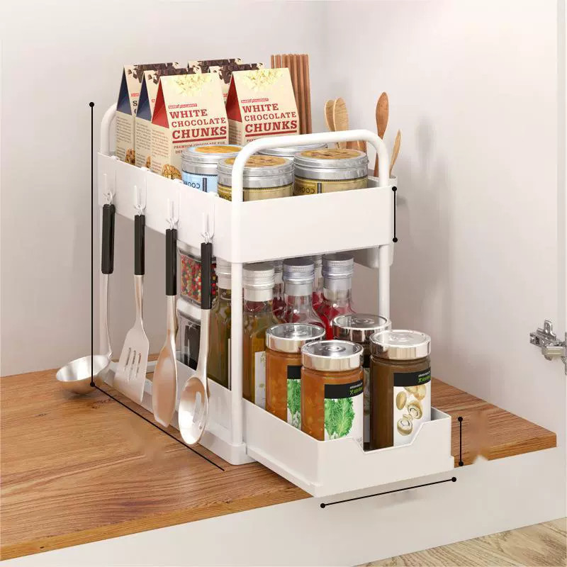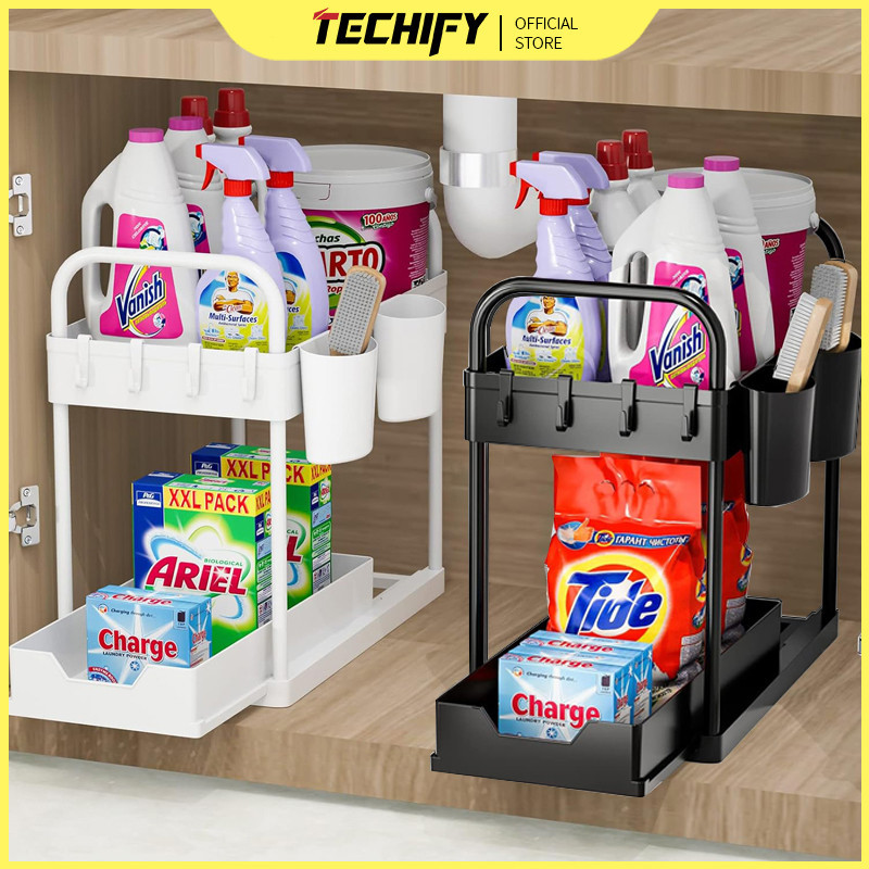 【TECHIFY】Rak Peralatan Makan Dua Tingkat, Rak Penyimpanan Bumbu, Rak Dapur, Rak Penyimpanan dengan Laci Multifungsi, Rak Penyimpanan Kosmetik Kamar Mandi, Rak Persegi Bertingkat untuk Penyimpanan