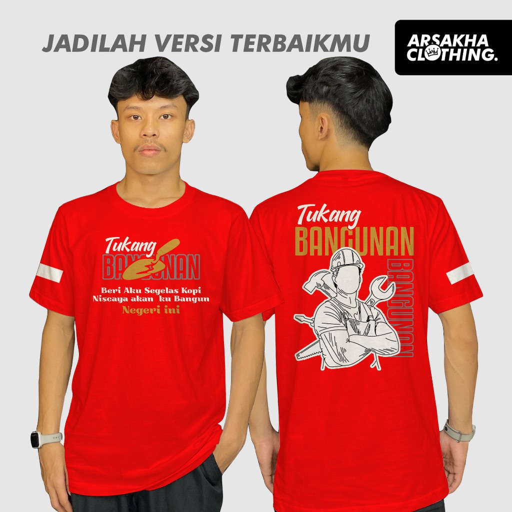 Kaos Tukang Bangunan Beri Aku Segelas Kopi Siluet Baju Distro Katun Combed 30s by Arsakha Clothing