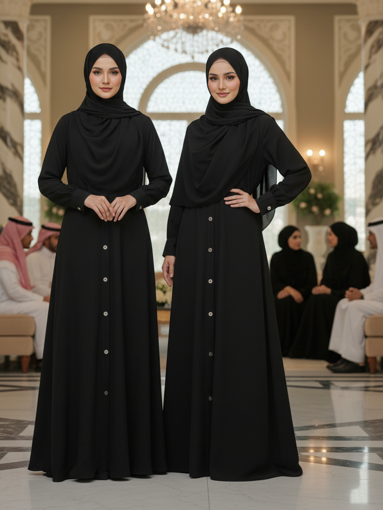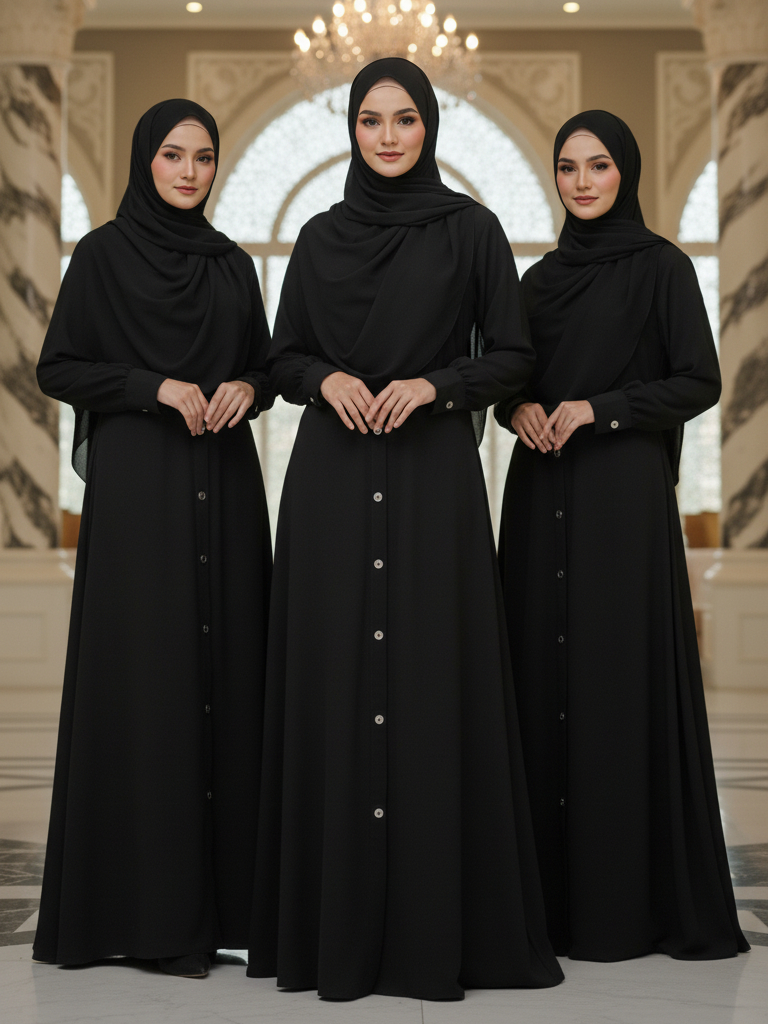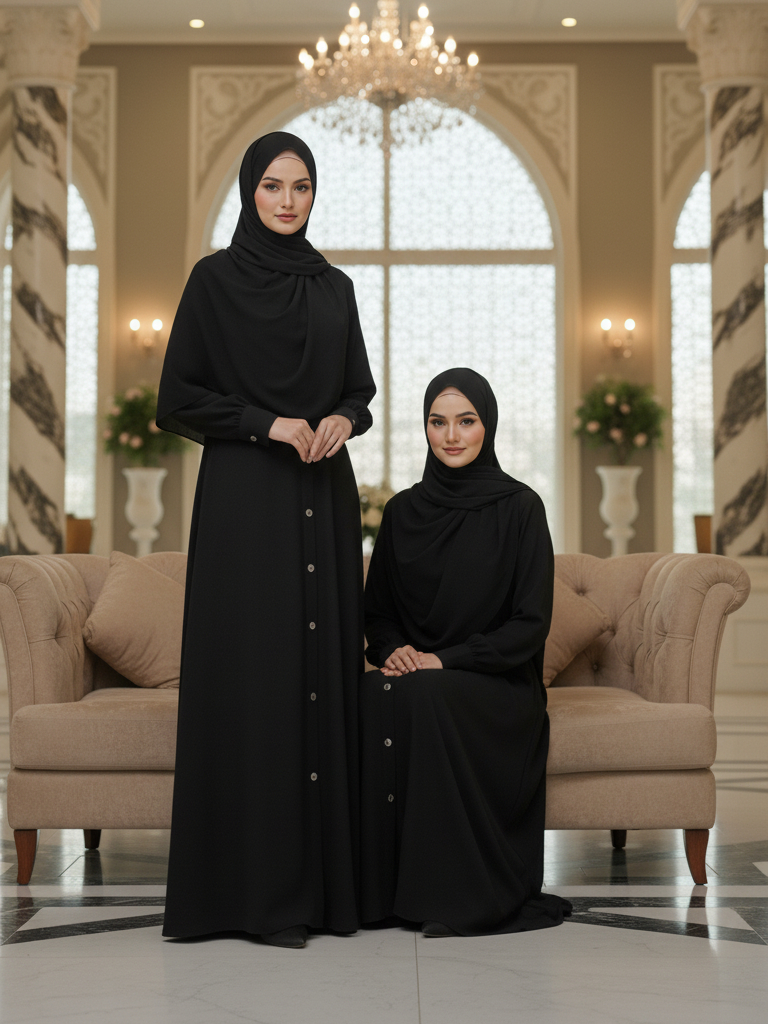 Zakia Dress Arabian Crepe M, warna hitam pekat banget, Gamis Wanita Lebaran 2026, Dress Hitam Muslimah Polos Elegan