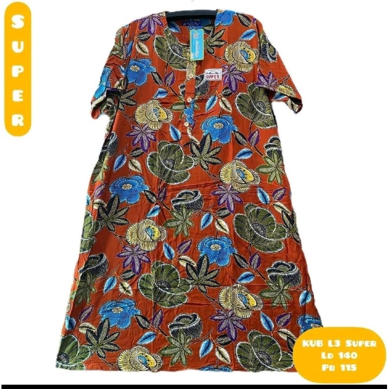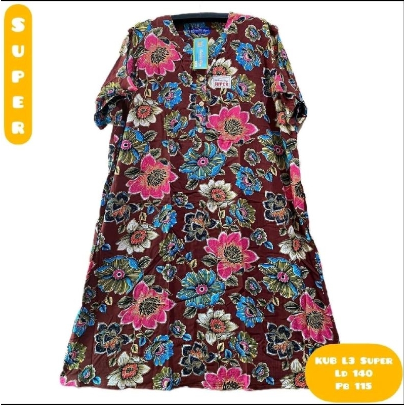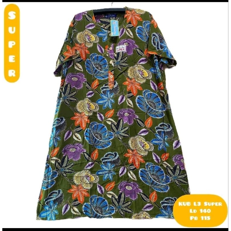 DASTER JUMBO L3 SUPER LENGAN PENDEK BATIK KENCANA UNGU ORI LD 140 CM / PAKAIAN BAJU SANTAI PIYAMA TIDUR WANITA MOTIF BUNGA TERBARU KATUN RAYON KUALITAS PREMIUM TEBAL PROMO GROSIR MURAH ASLI BATIKKU BISA COD