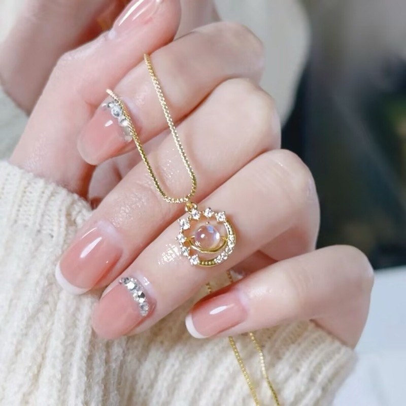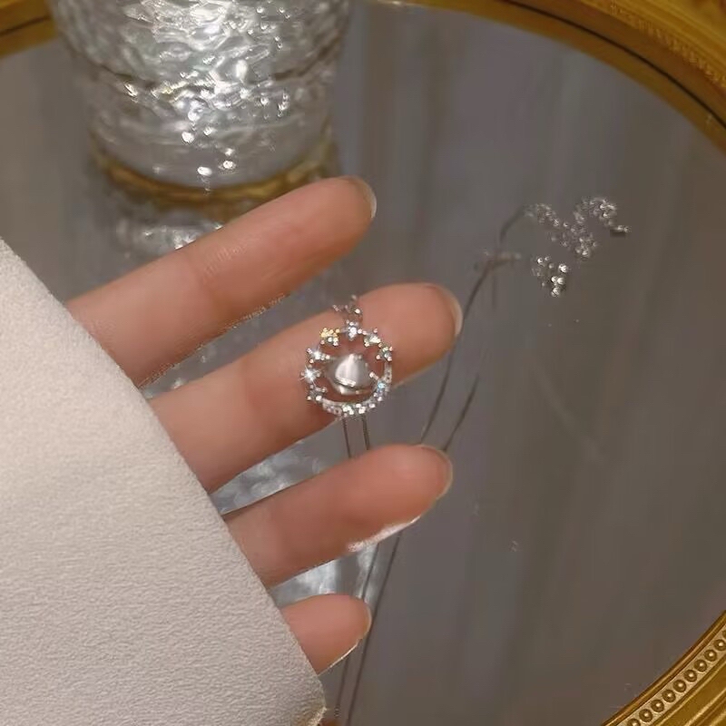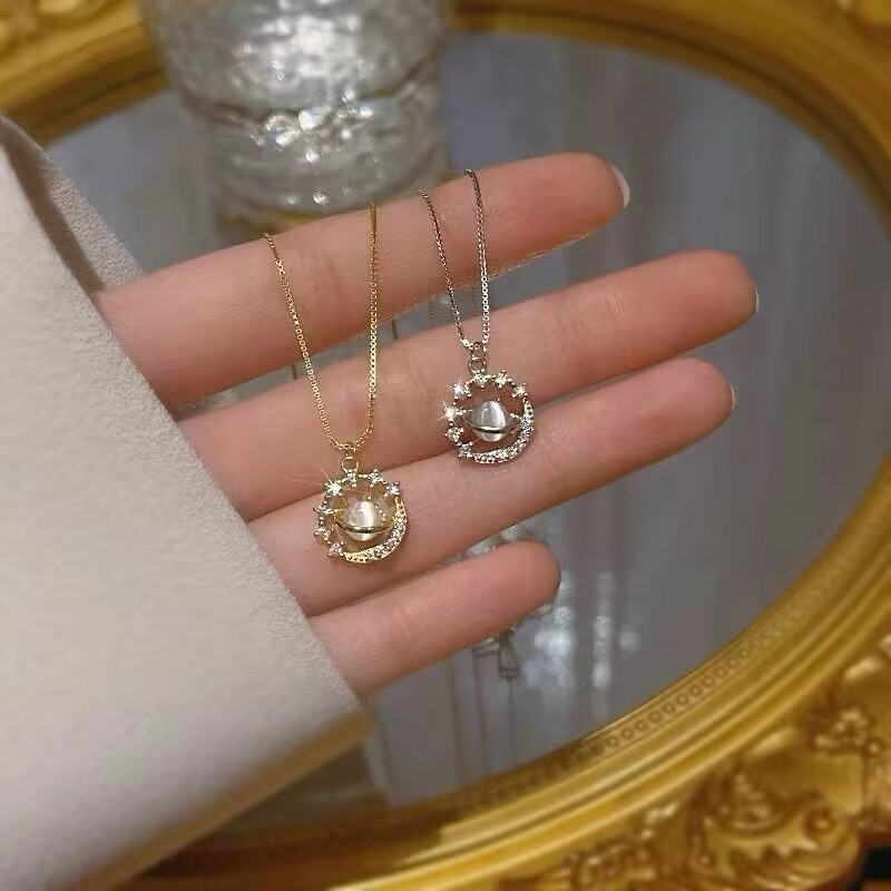 kalung S925 Saturnus liontin bola astronomi - Kalung Rantai Liontin Mutiara Diamond - Pendant Swarovski Rhinestone Ball - Kalung Dancing Stone Mahkota