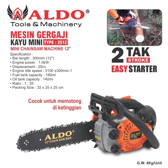 MESIN GERGAJI KAYU MINI 12" 2512 / MINI CHAINSAW MACHINE 12" / MESIN GERGAJI KAYU CHAIN SAW MERK ALDO