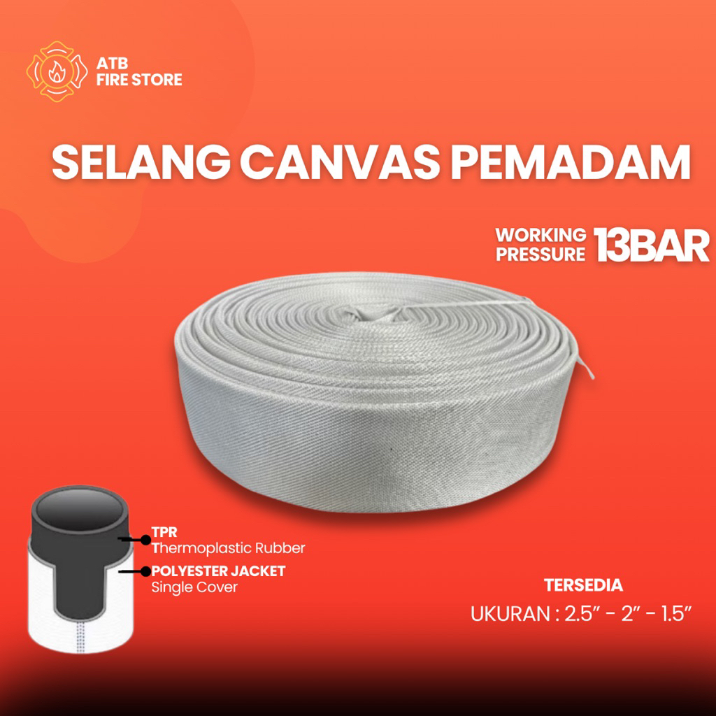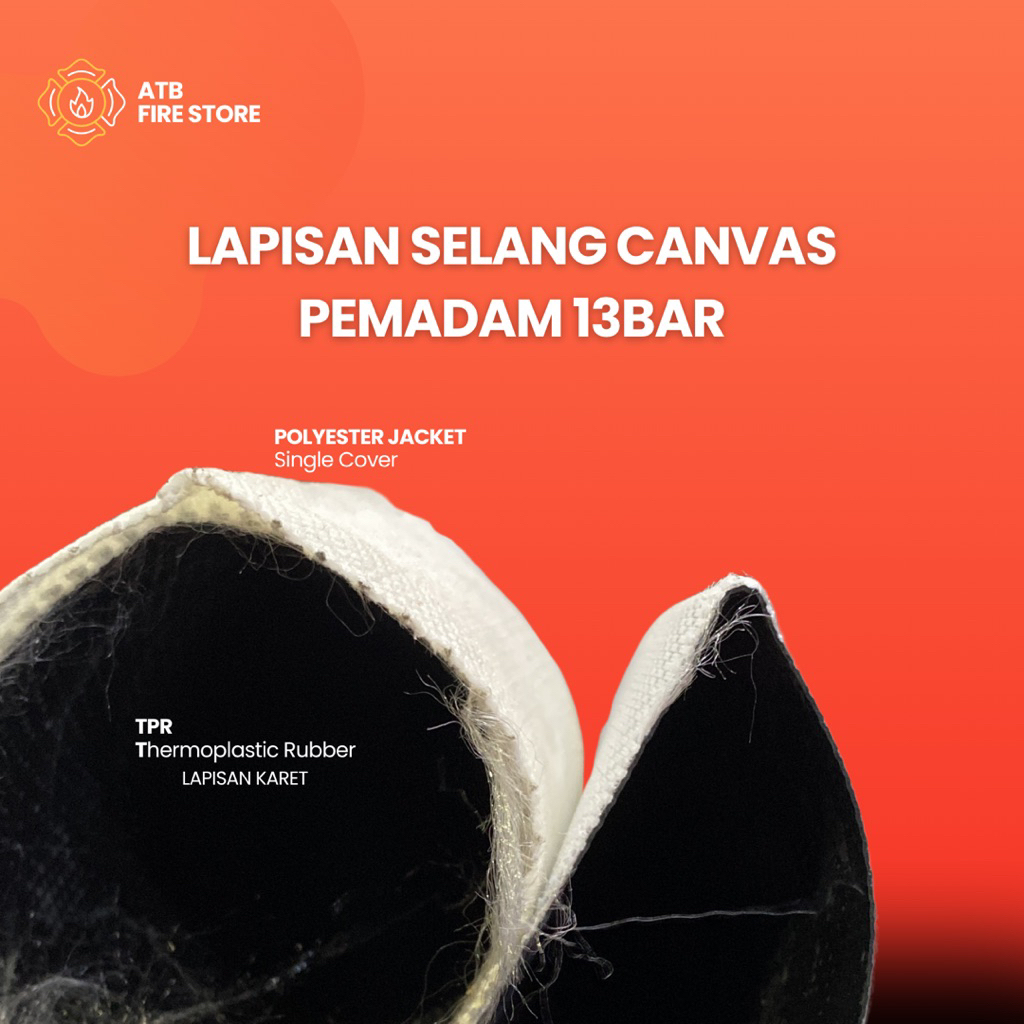 Selang Pemadam Canvas 13 Bar - Fire Hose Canvas TPR Rubber Liner dan Polyester Jacket - Ringan dan Tahan Tekanan