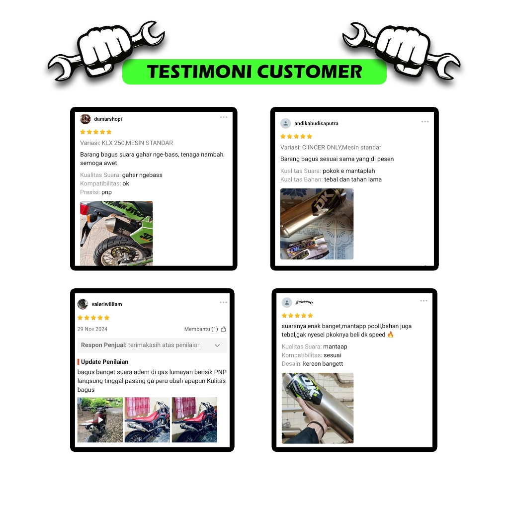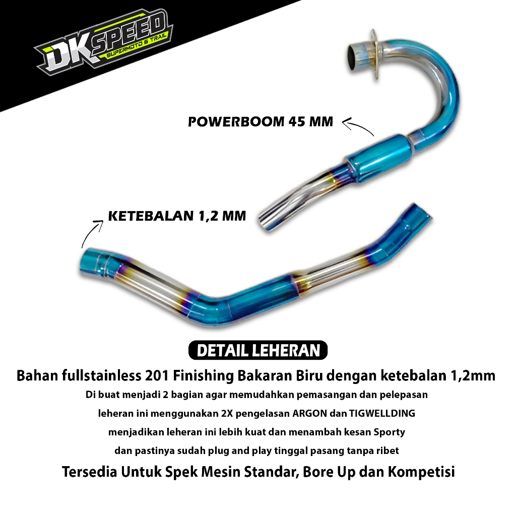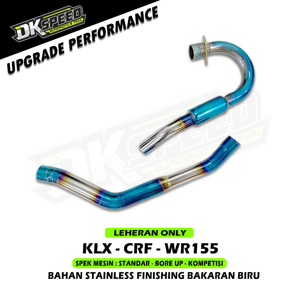 KNALPOT RACING DK SPEED MOTOR KLX CRF WR155 INLET 38MM 50MM LEHERAN ONLY BAKAR BIRU TITANIUM LOOK