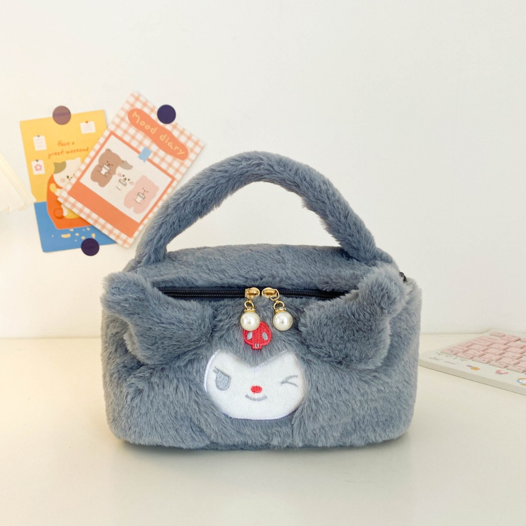 【SUTANG】Tas Kosmetik Bulu Halus / Pouch Serbaguna Motif Karakter / Tas Tangan Bulu Halus Lucu / Tas Kosmetik Karakter Lucu