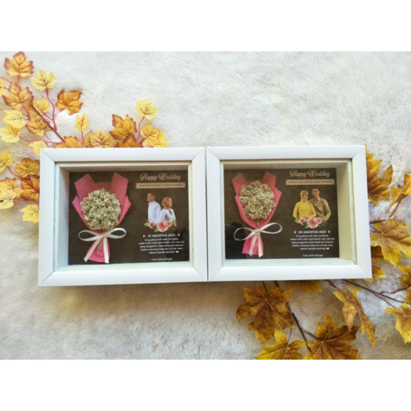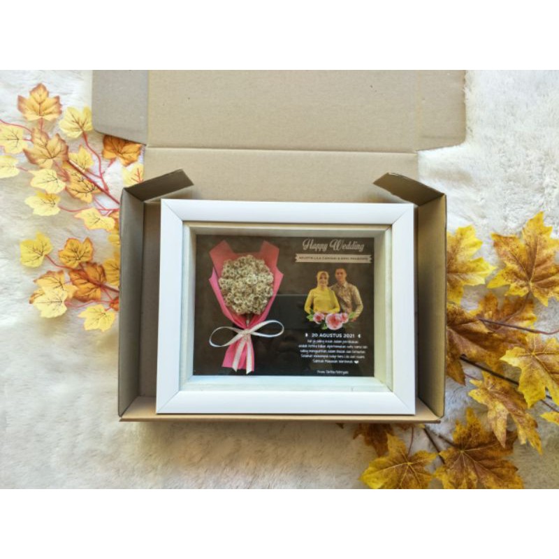 Bingkai Foto 3D Rustic Bouquet Bunga Edelweis Kering Kado Wisuda Ulangtahun Wedding