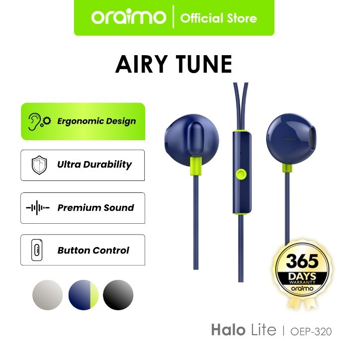 Oraimo Wired Earphone Airy Tune OEP-320 Semi In-Ear Headset | Handsfree Kabel Design Premium Sound