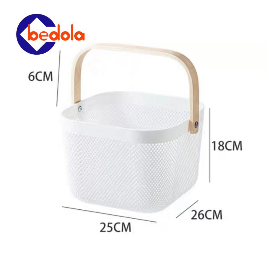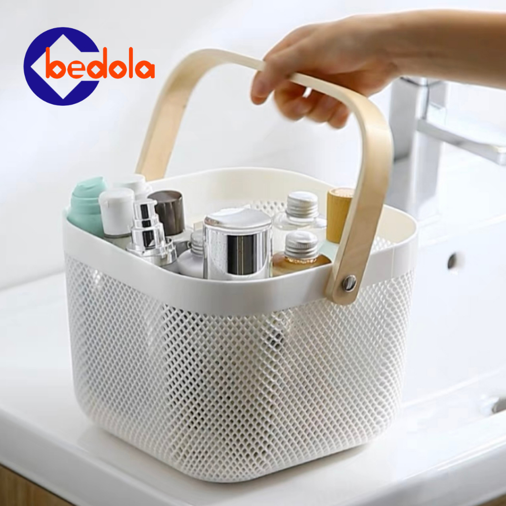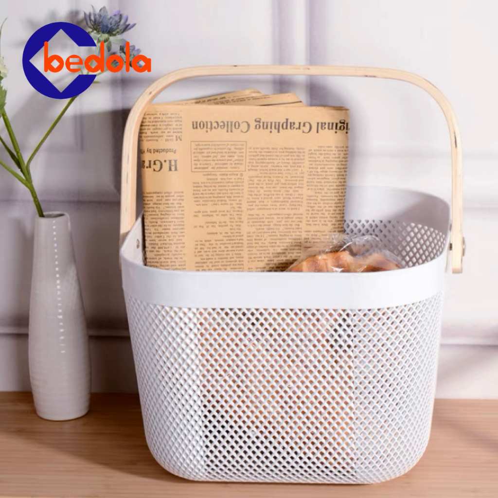 Keranjang plastik keranjang penyimpanan basket serbaguna handle kayu