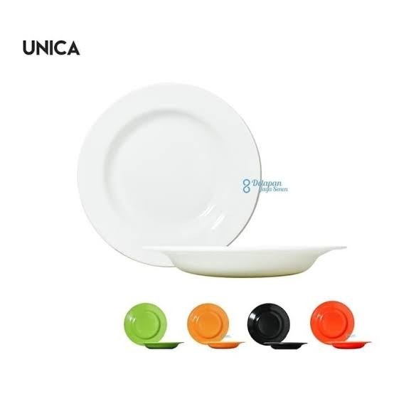 Piring Makan Melamin Tebal Kuat Anti Pecah Awet Tahan Panas Premium Unica 9" Melamine Dinner Plate Pirin Hitam Putih Warna Warni Piring Bulat Makan Nasi Saji Sayur Lauk Makanan Cafe Restoran Hotel Katering Rumah Makan Jepang Bento Buffet Piring Murah