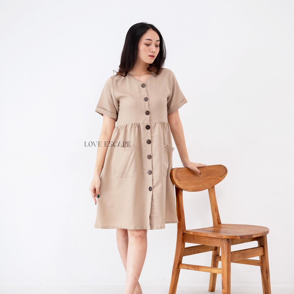LOVE ESCAPE Dress Casual Wanita/Terusan Wanita Jumbo/Button Midi Dress